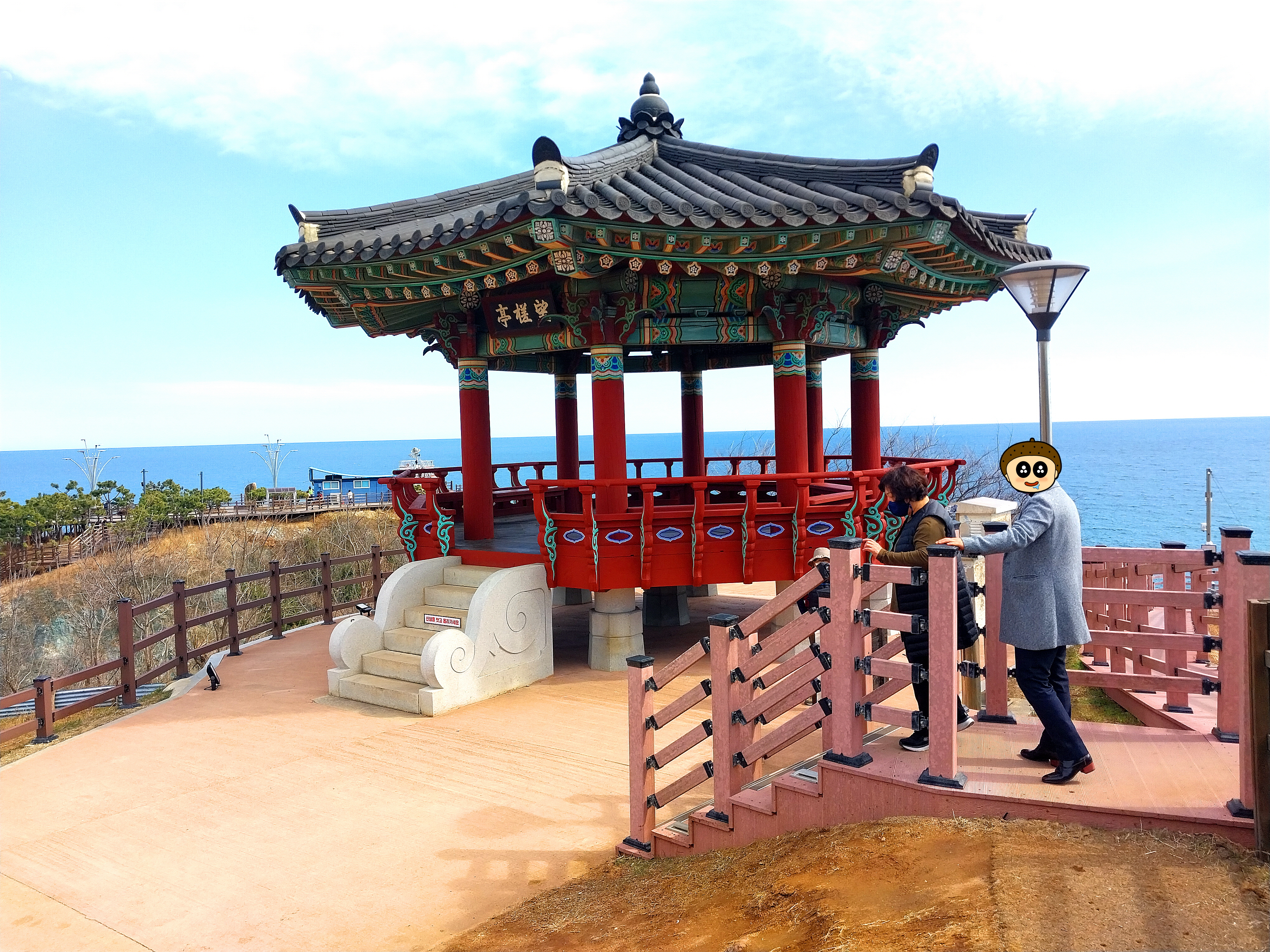 ▲조금 더 가서 데크계단을 통해 올라가서 정자까지 왔습니다. 소실된 것을 복원했다는 망사정인가?