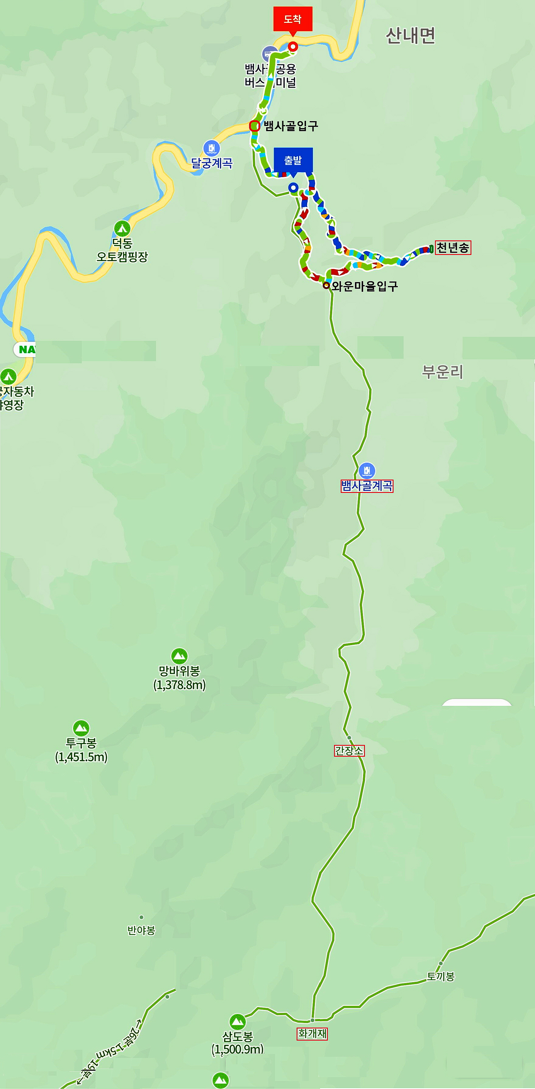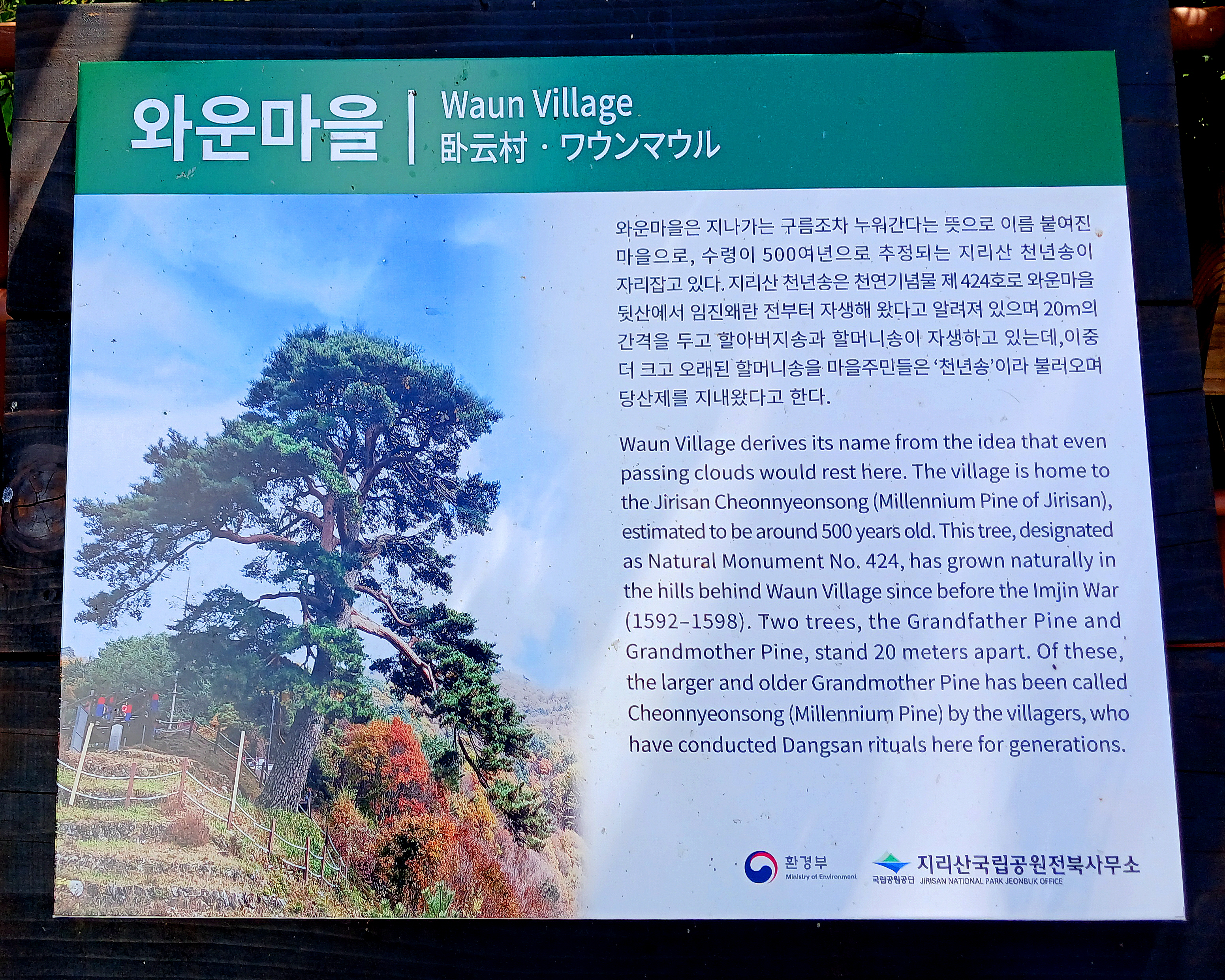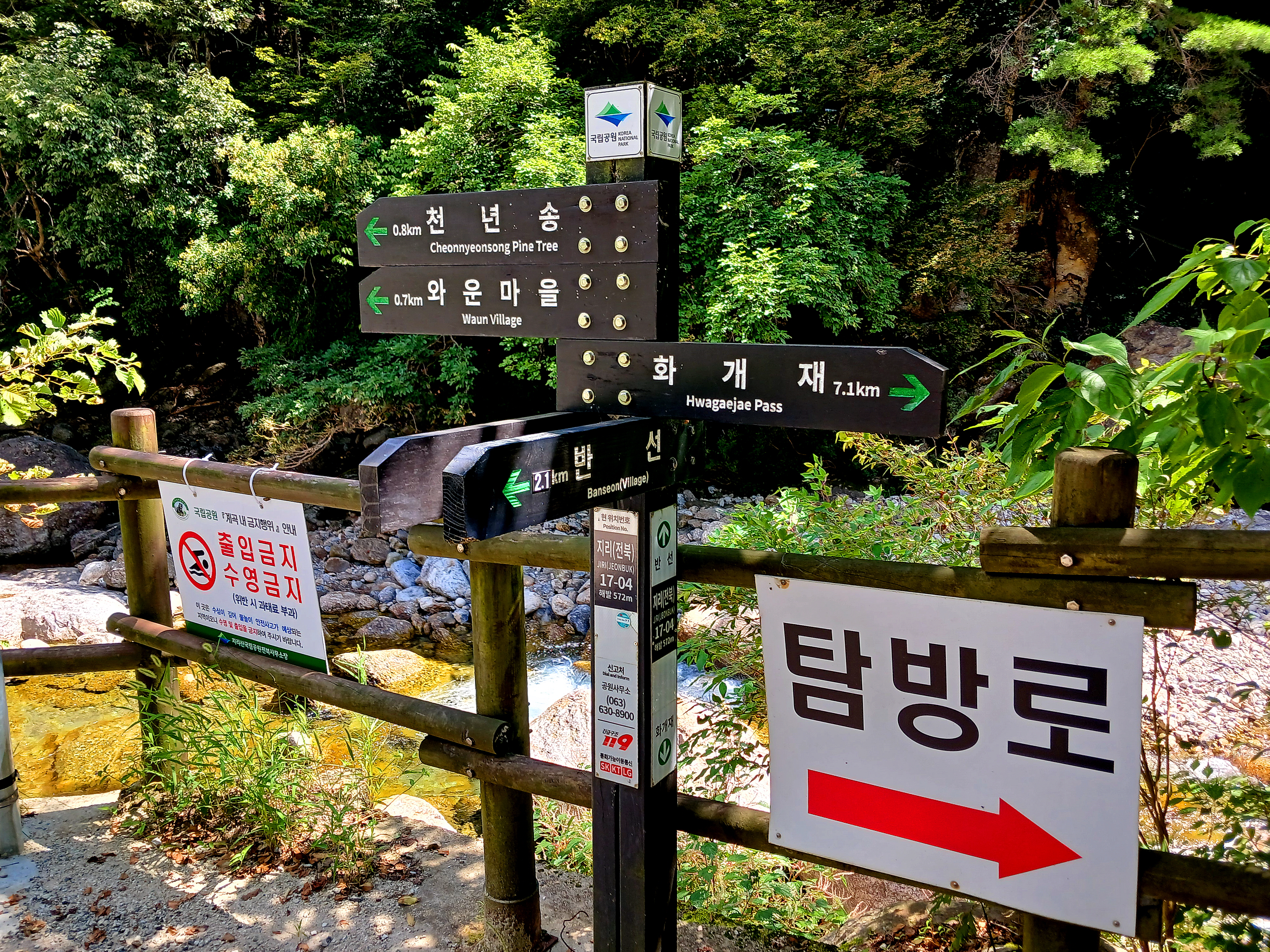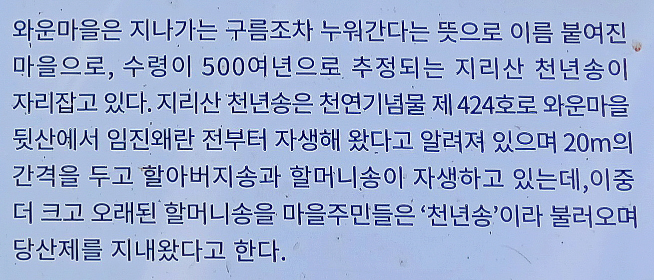 ▲ 천년송이 있는 와운마을 입구 갈림길까지 왔습니다.