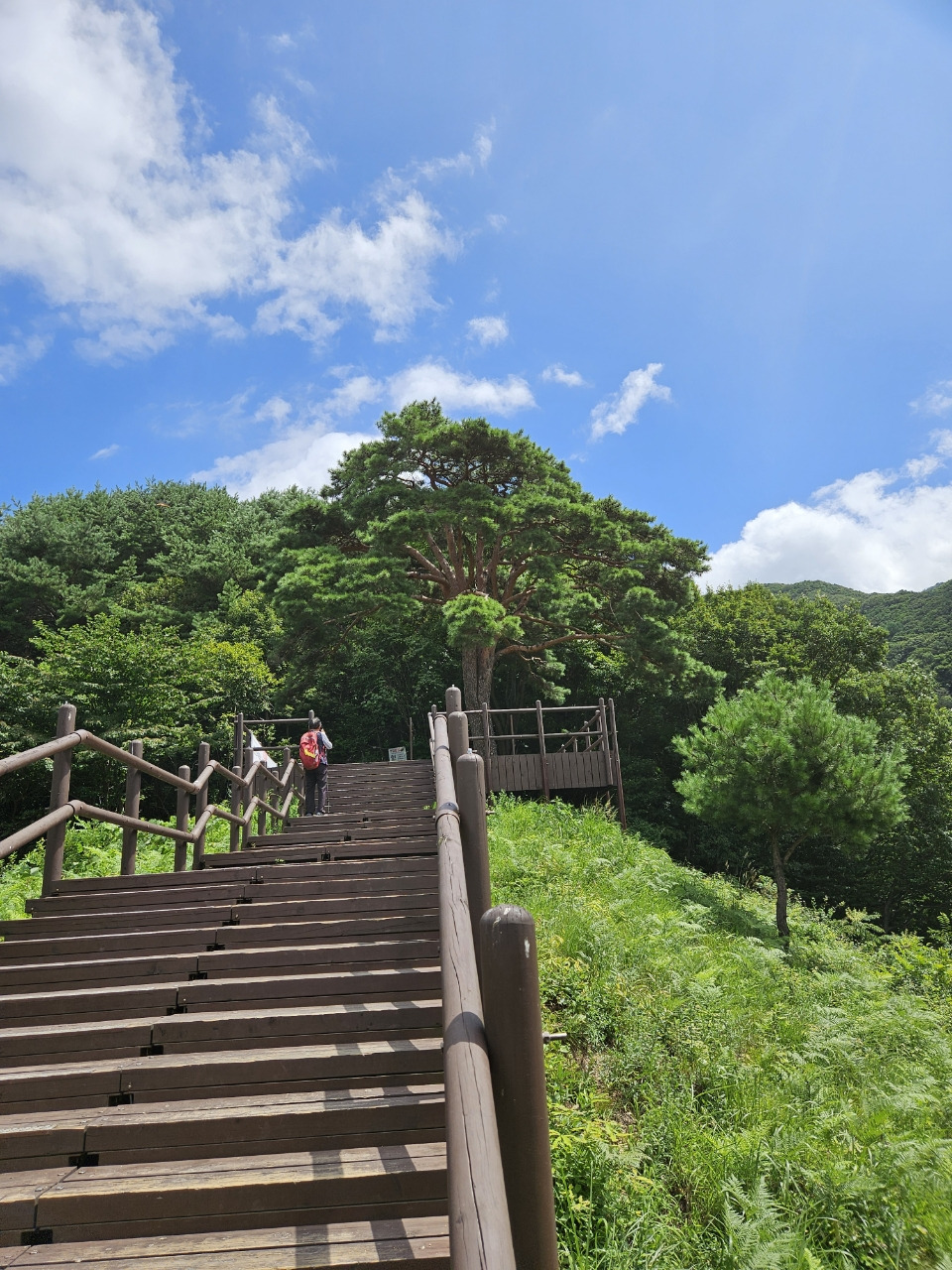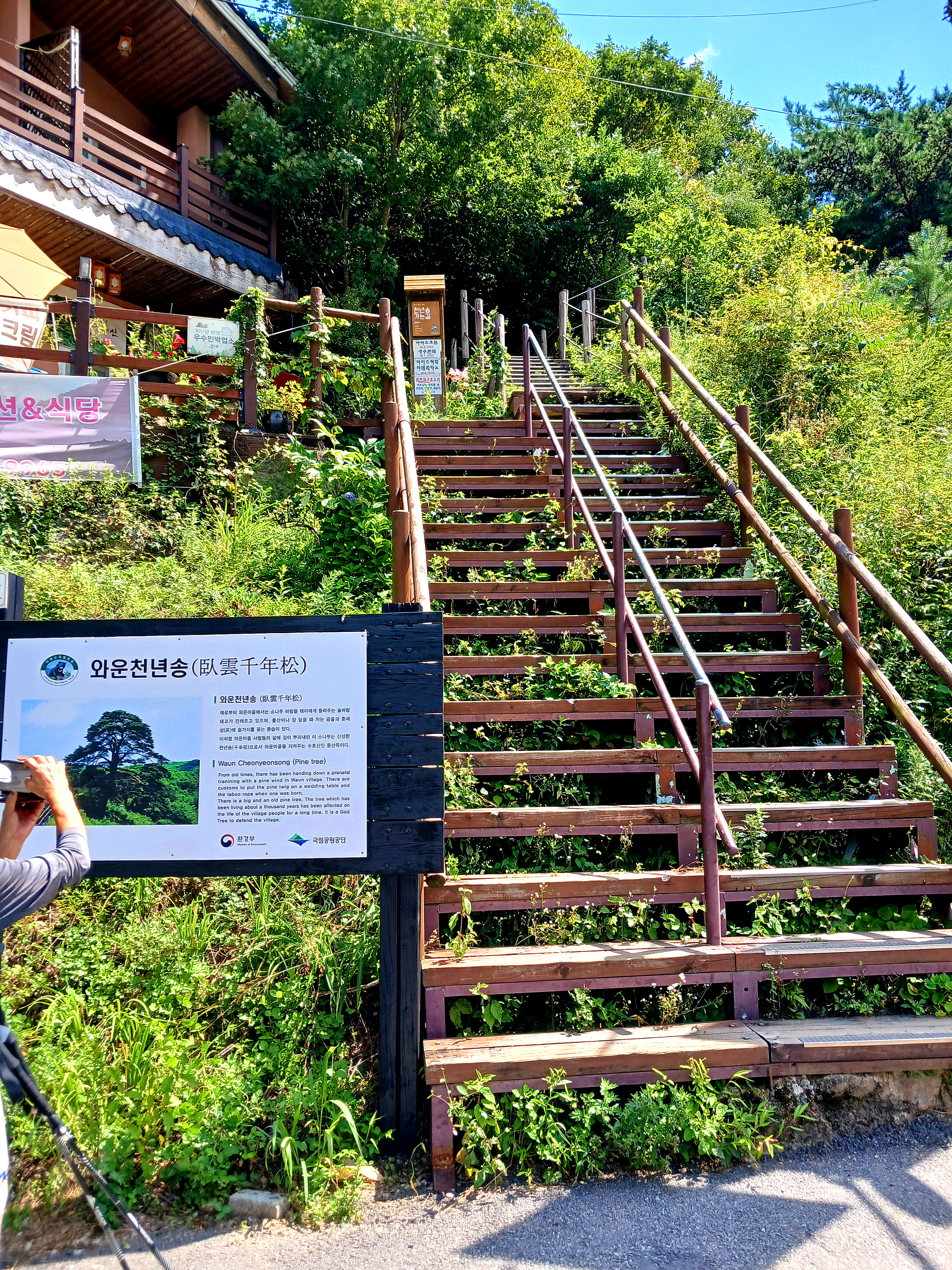 ▲ 천년송 아래까지 왔습니다. 여기서 부터 3백여 계단을 올라가야합니다.