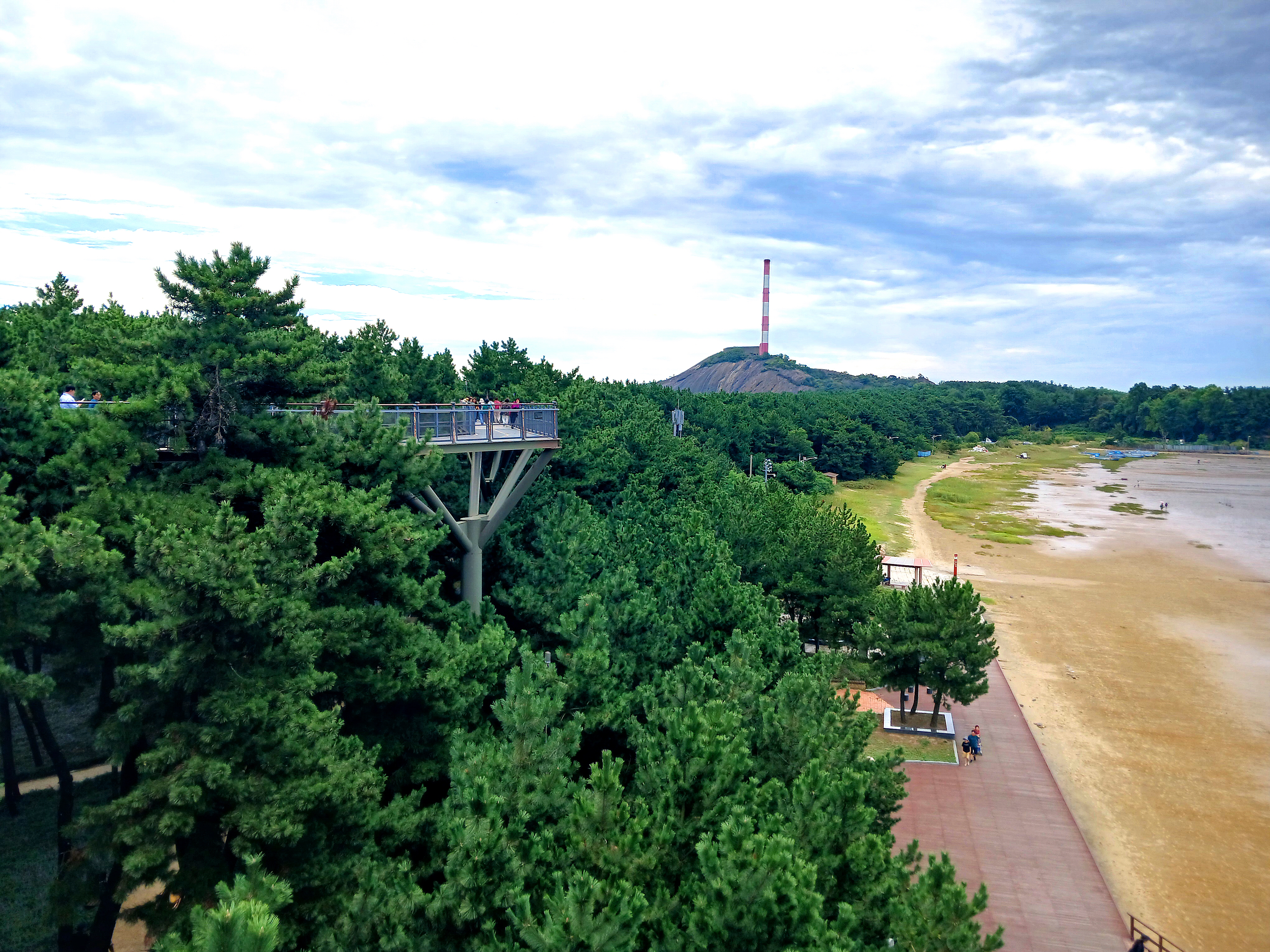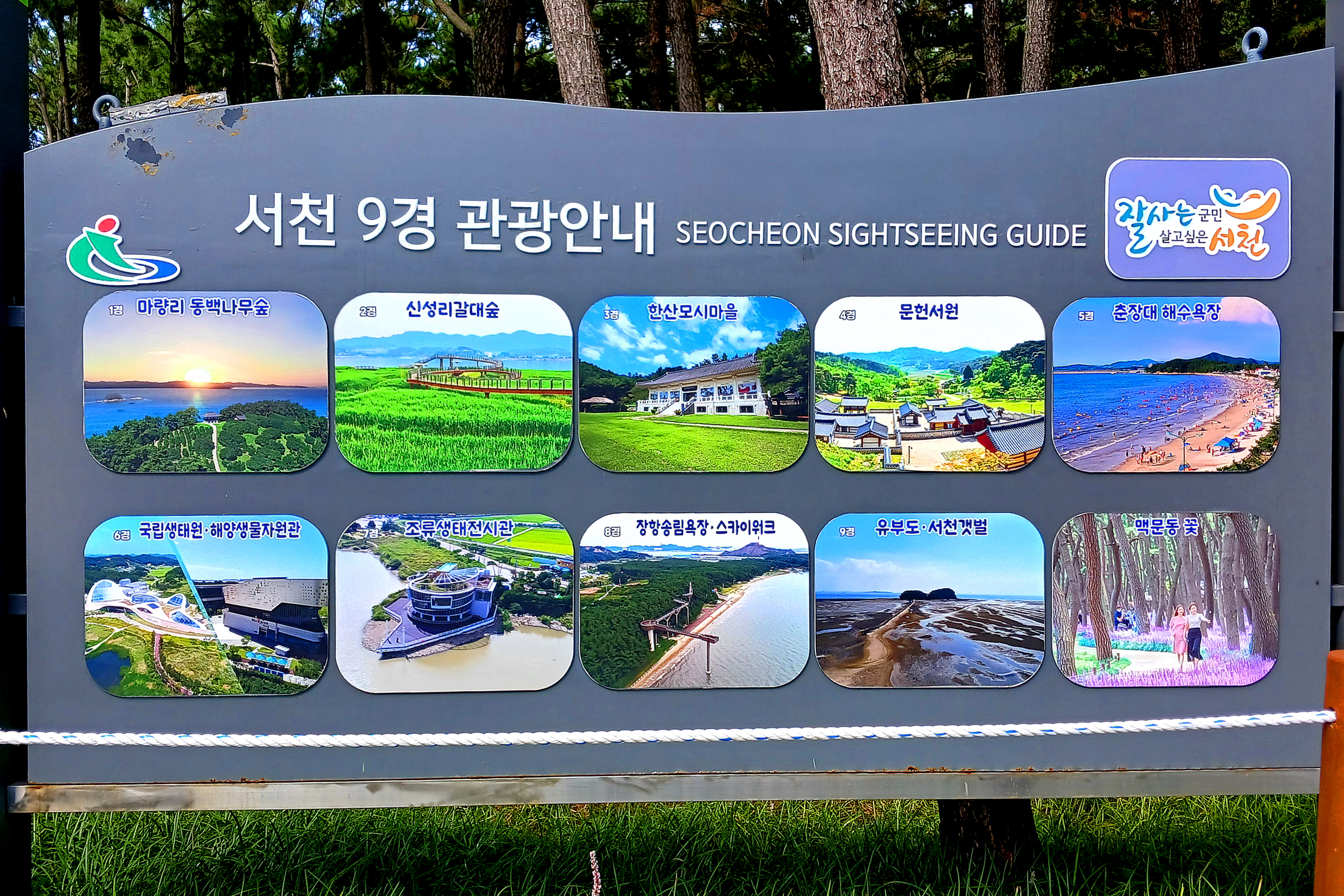 ▲4주차장에서 버스를 내려 송림숲을 걸으며 스카이워크, 해안데크길을 걷고 해양생물 자원관도 보고 점심 식사후 버스에 올라 마량포로 옮깁니다.
