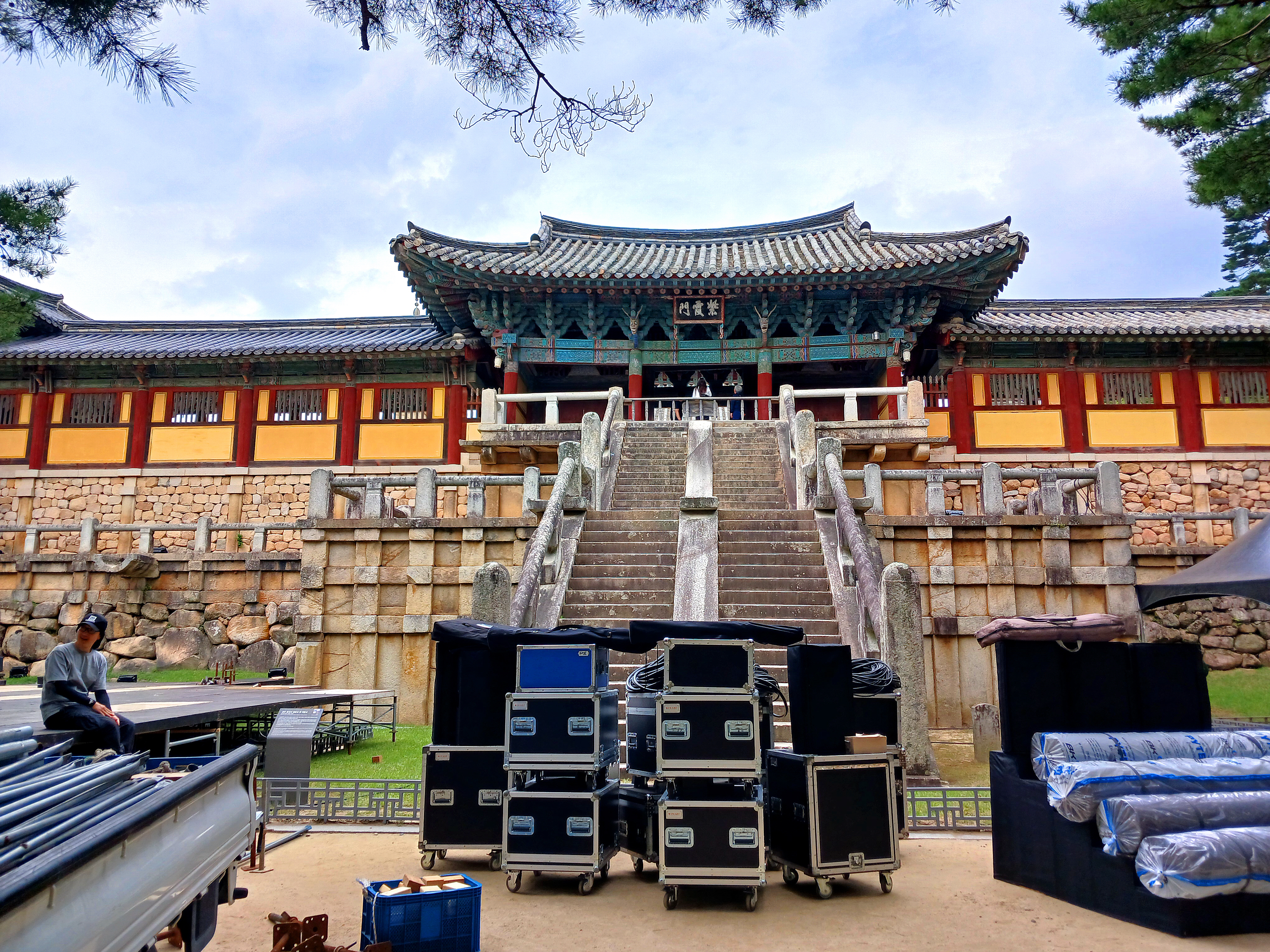 ▲불국사 앞에도 무대시설을 하느라 복잡합니다. 이곳 자하문으로 들어가지 못하고 돌아서 옆문으로 들어갑니다.