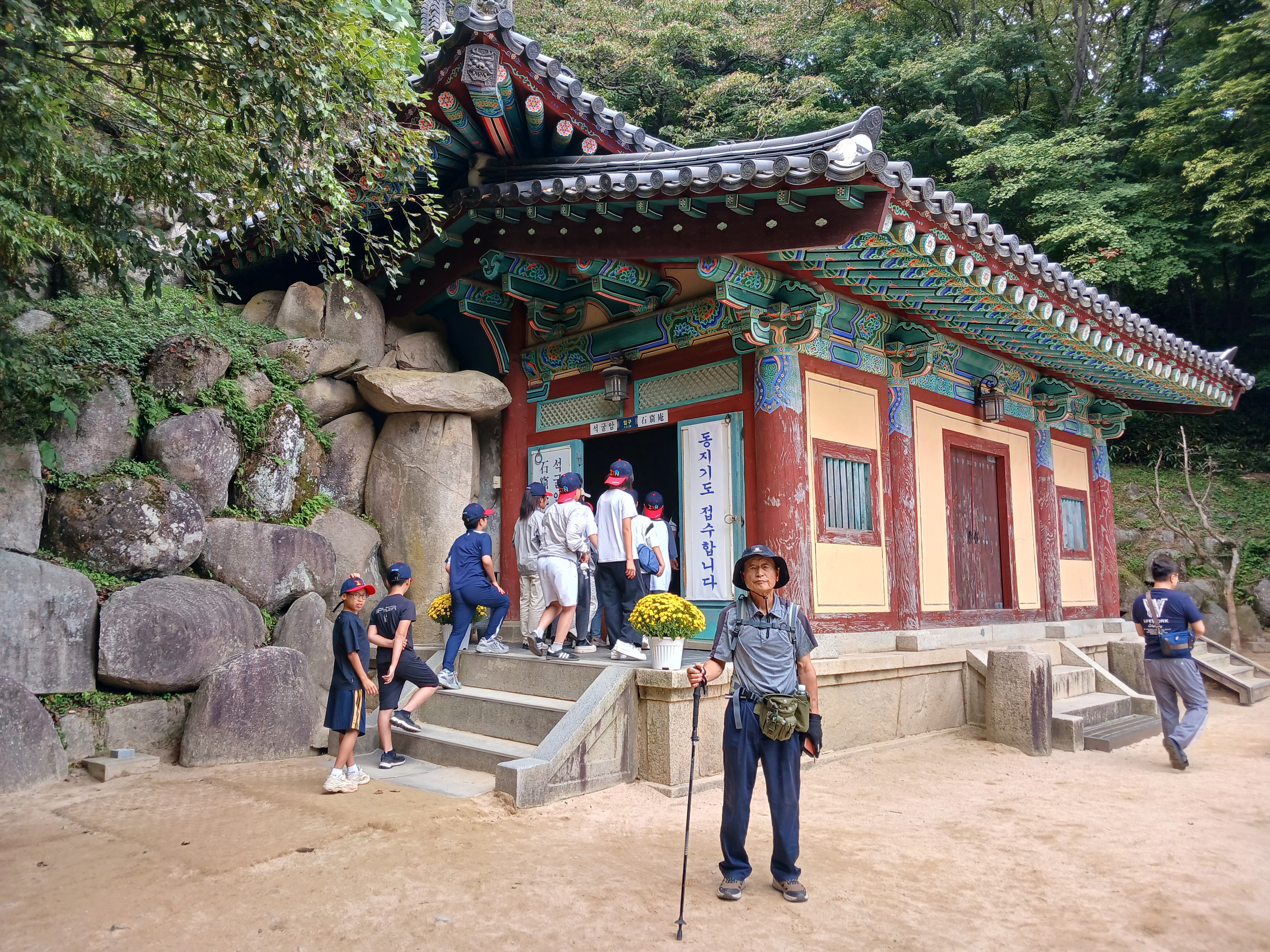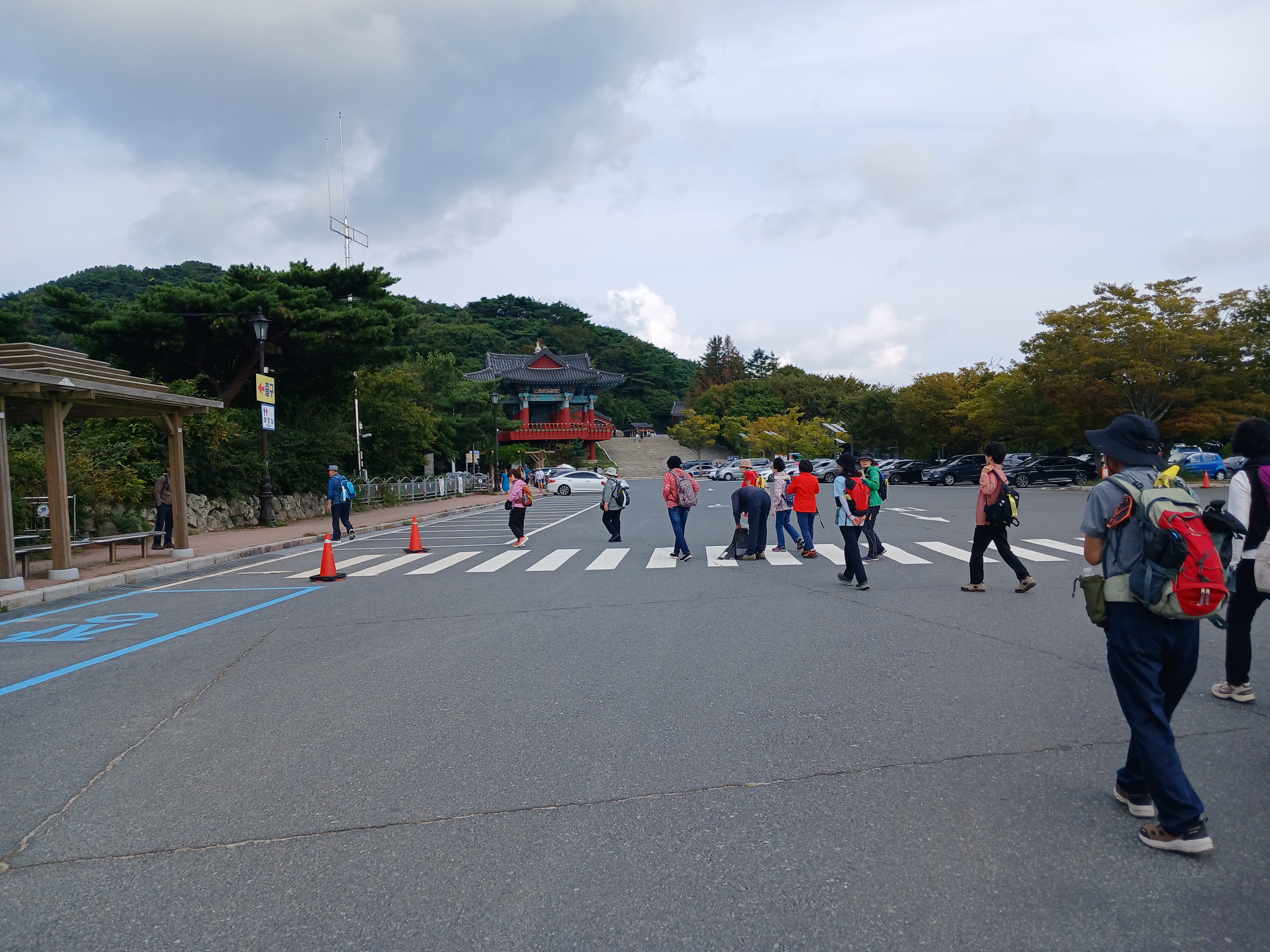 ▲먼저 석굴암 주차장까지 버스가 올라가서 내려줍니다. 산행팀은 토함산까지 갔다 내려오고 나머지는 석굴암까지만 다녀오기로 합니다.
