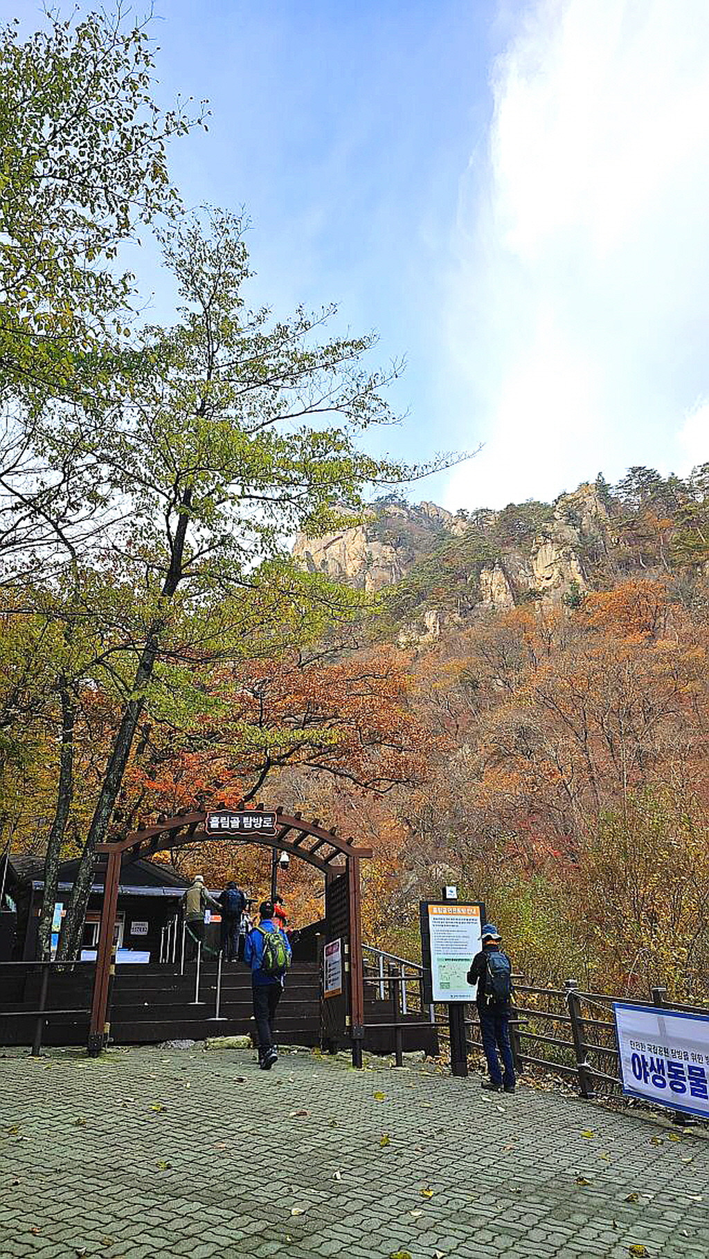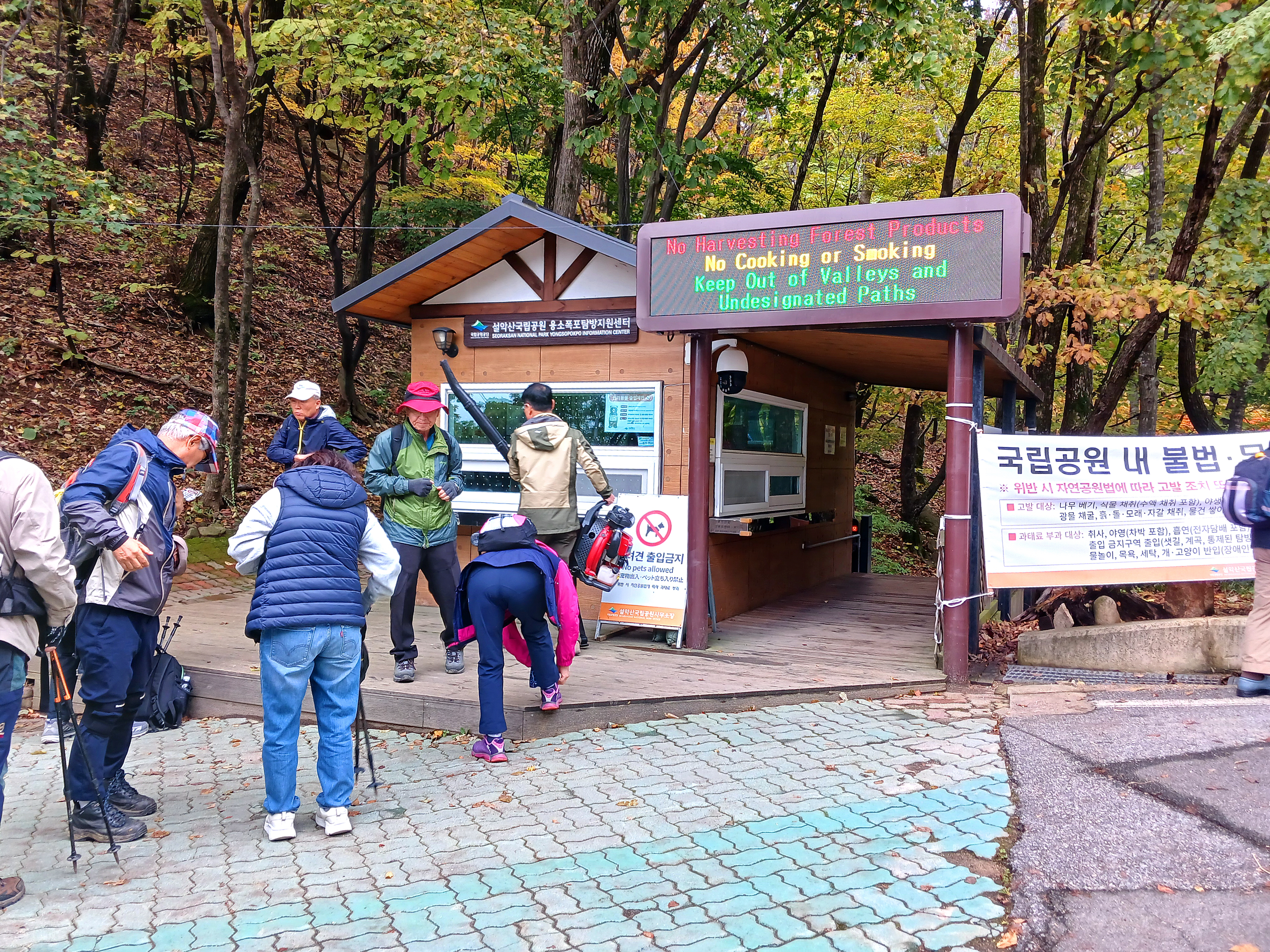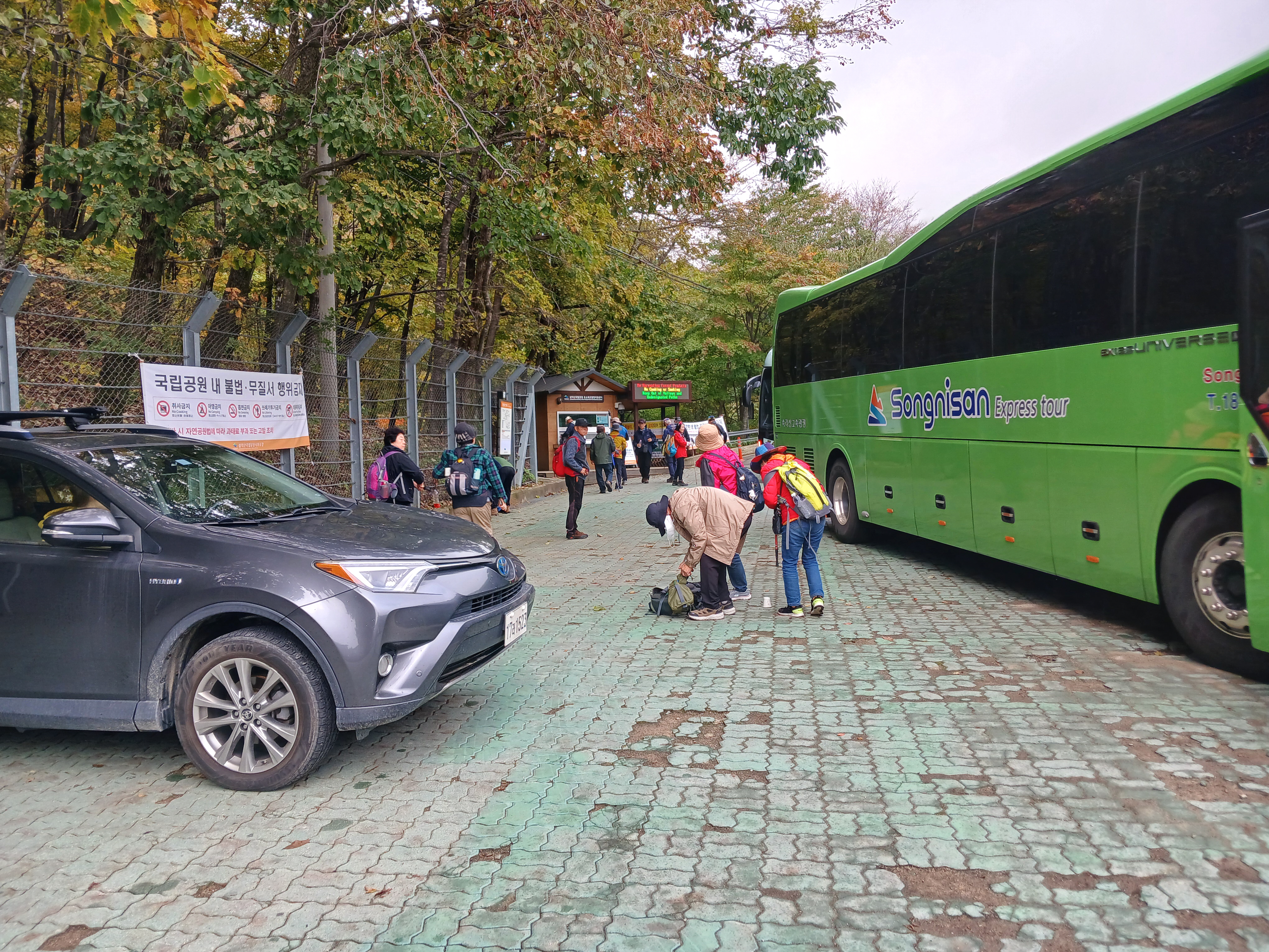 ▲흘림골 입구에서 A팀을 내려줍니다. 예약제가 시행중이어서 예약증명을 확인 받느라 사진을 찍지 못해 빌려왔습니다.