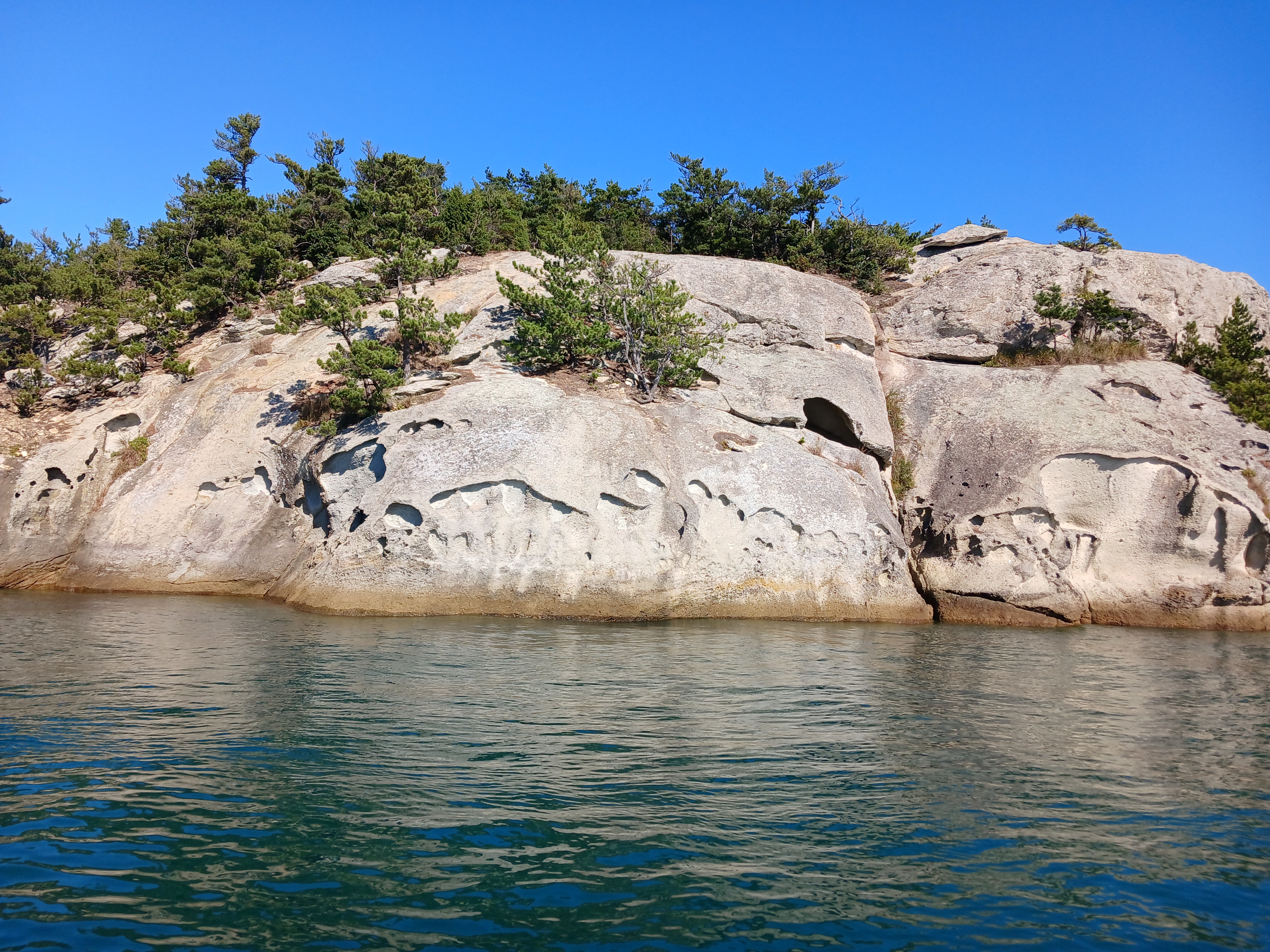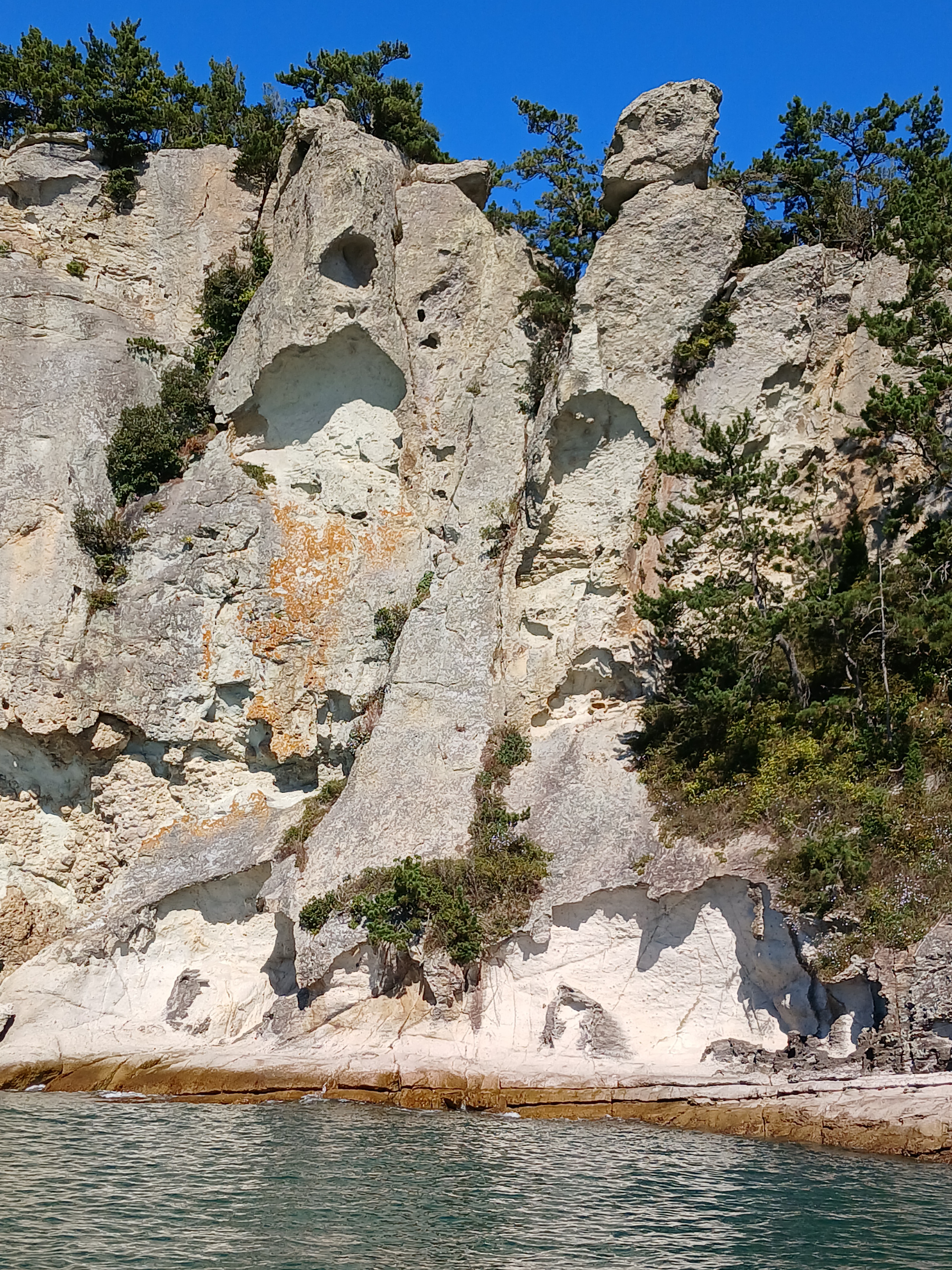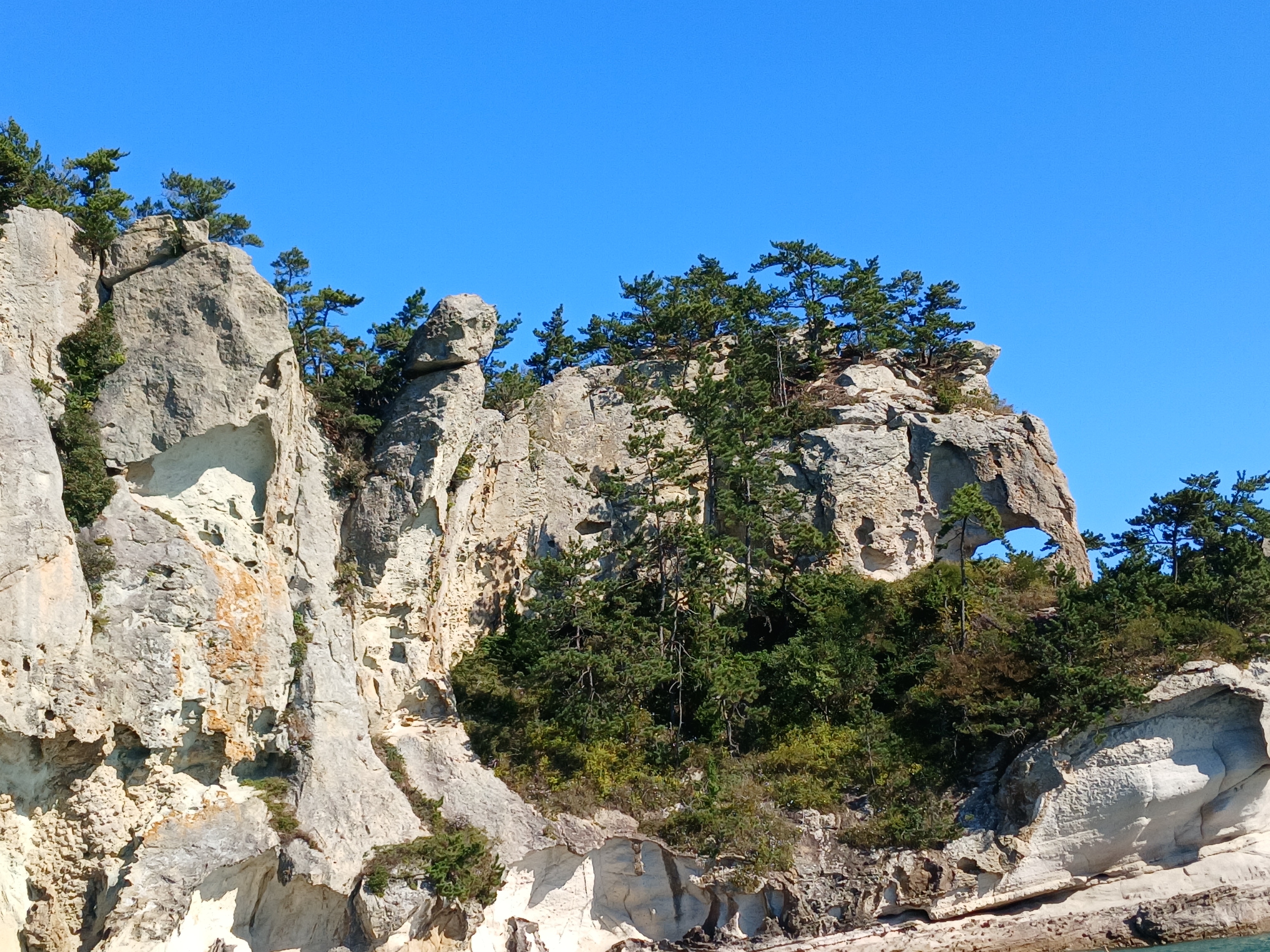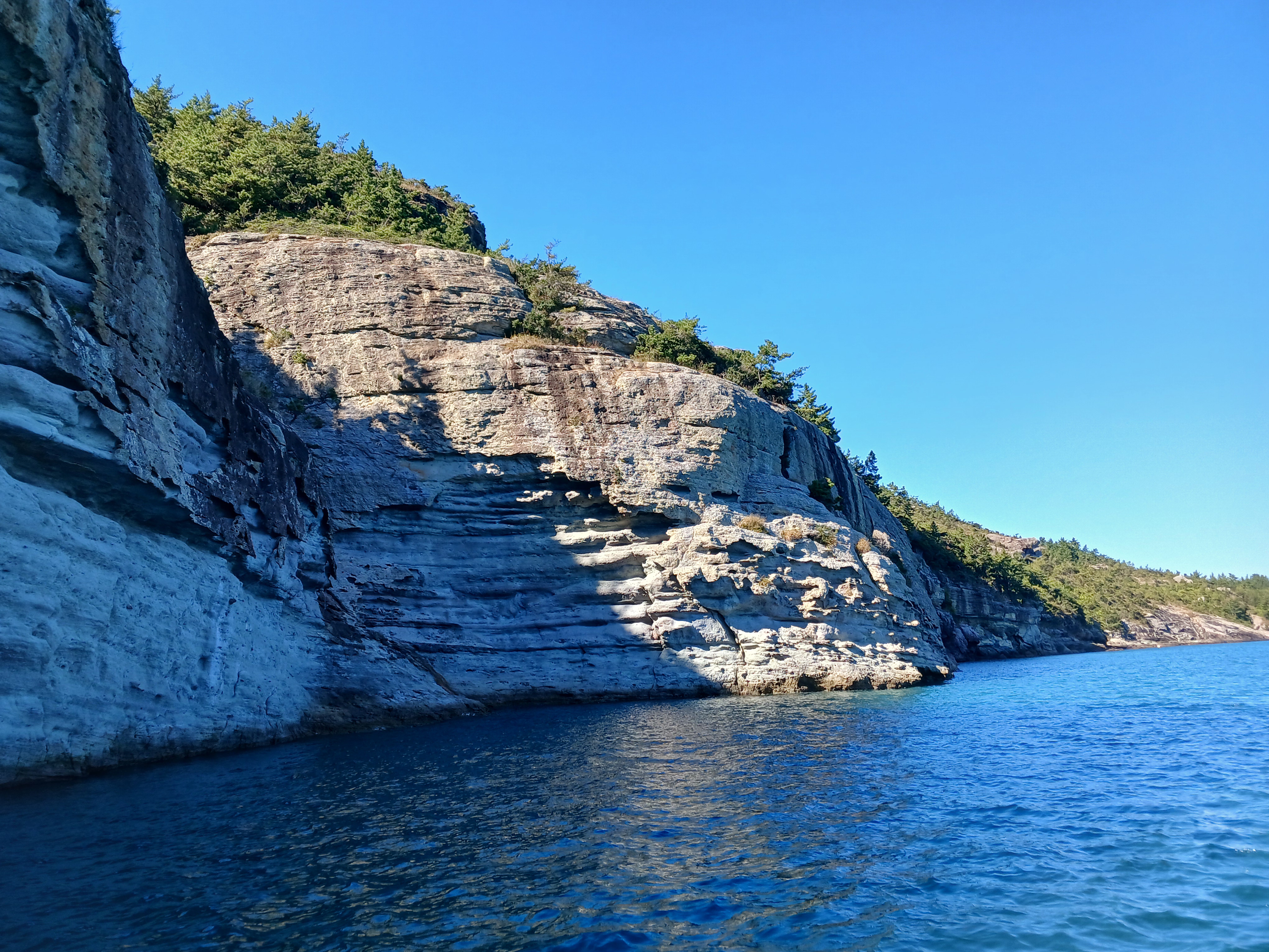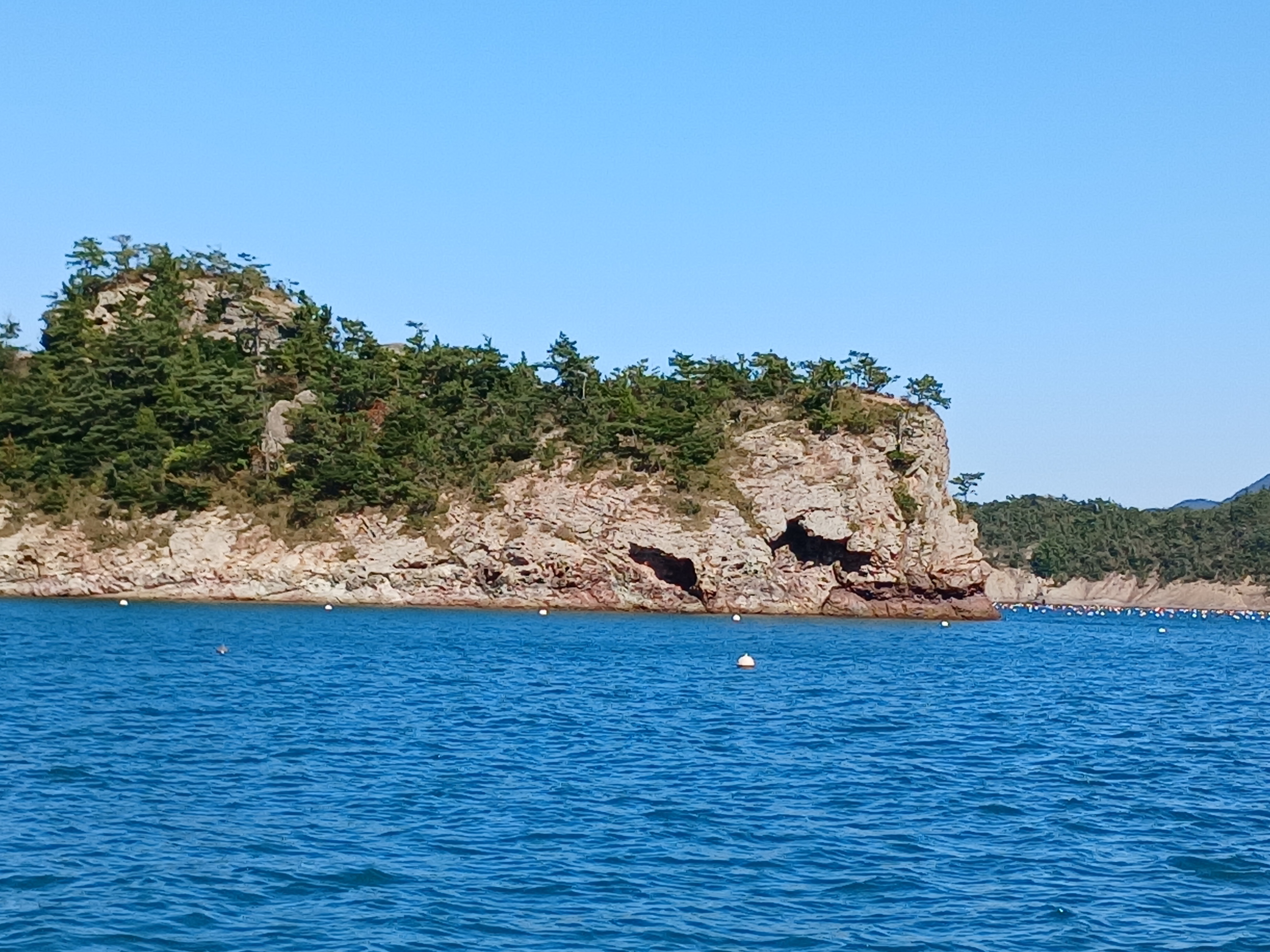 ▲ 조금만 더 윗쪽으로 돌아가면 부채바위와 병풍바위가 보인다는데 이쪽은 풍랑이 세어서 위험하여 그만 돌아 내려갑니다.
