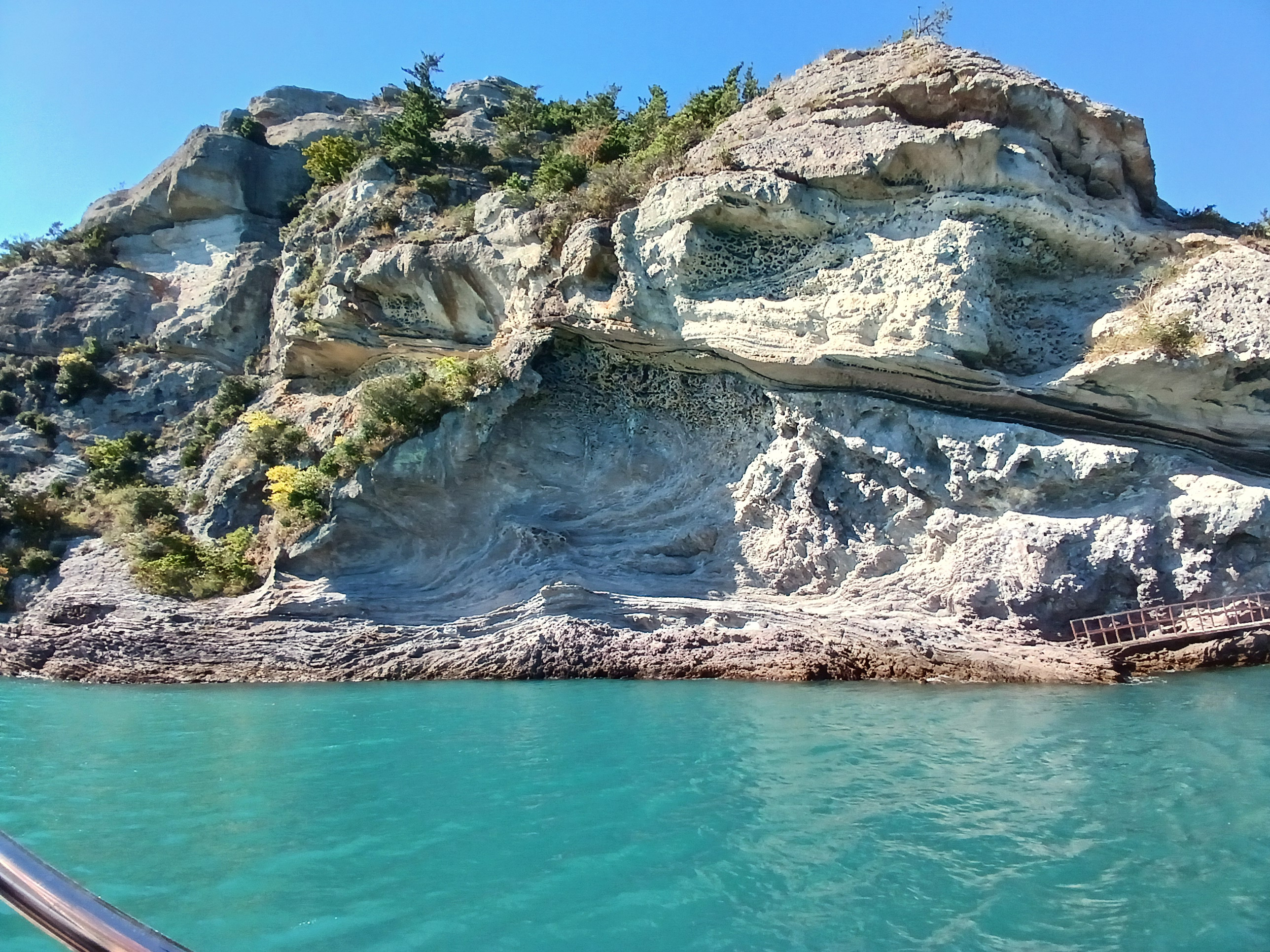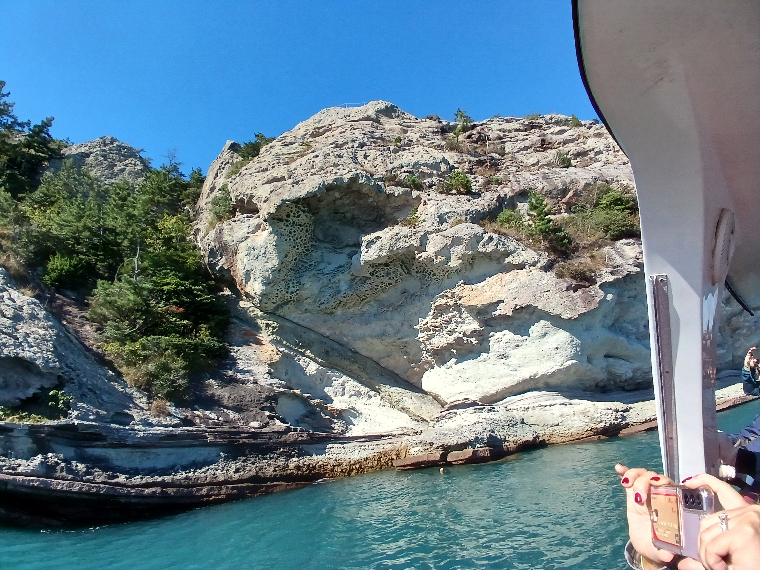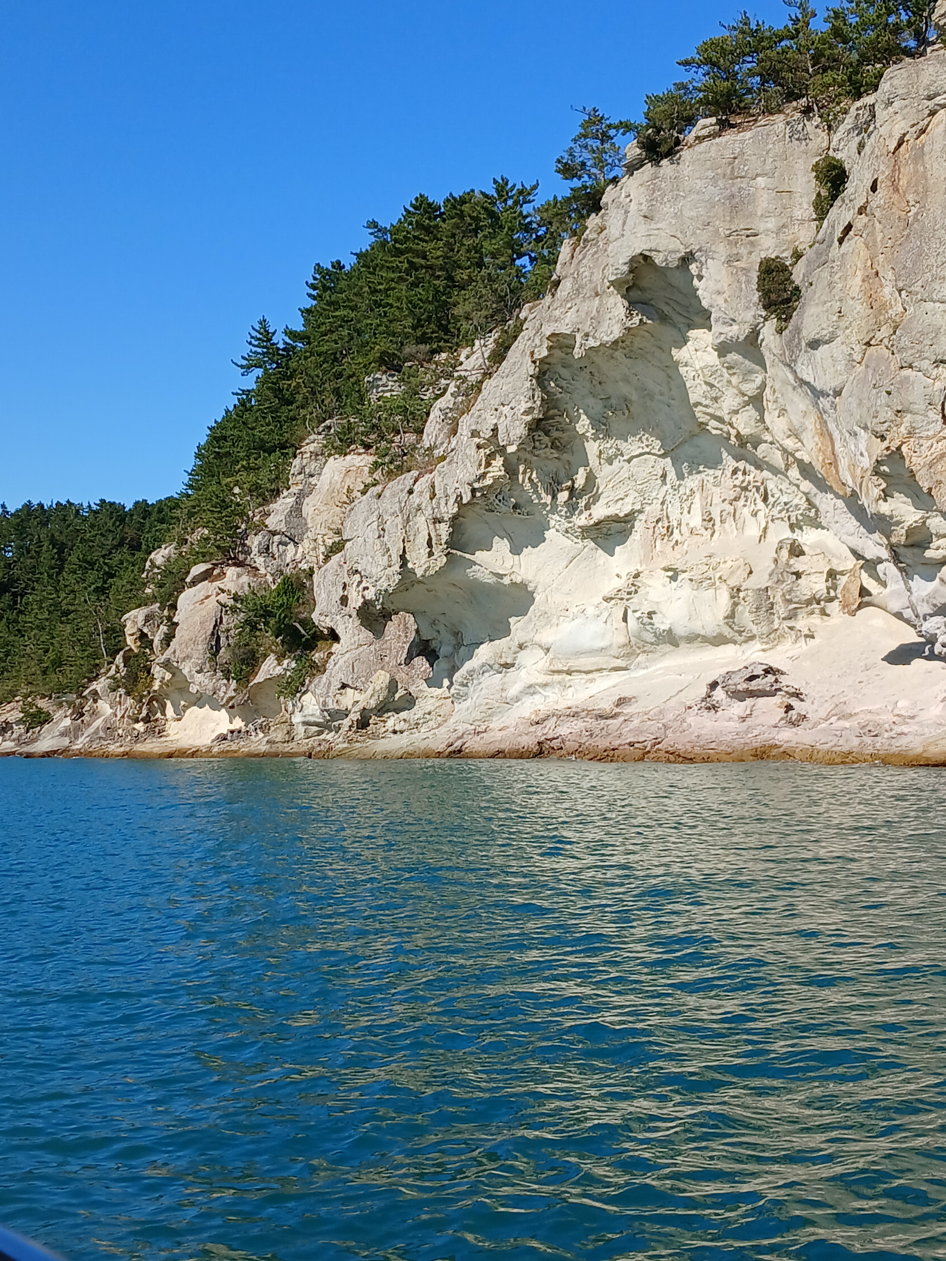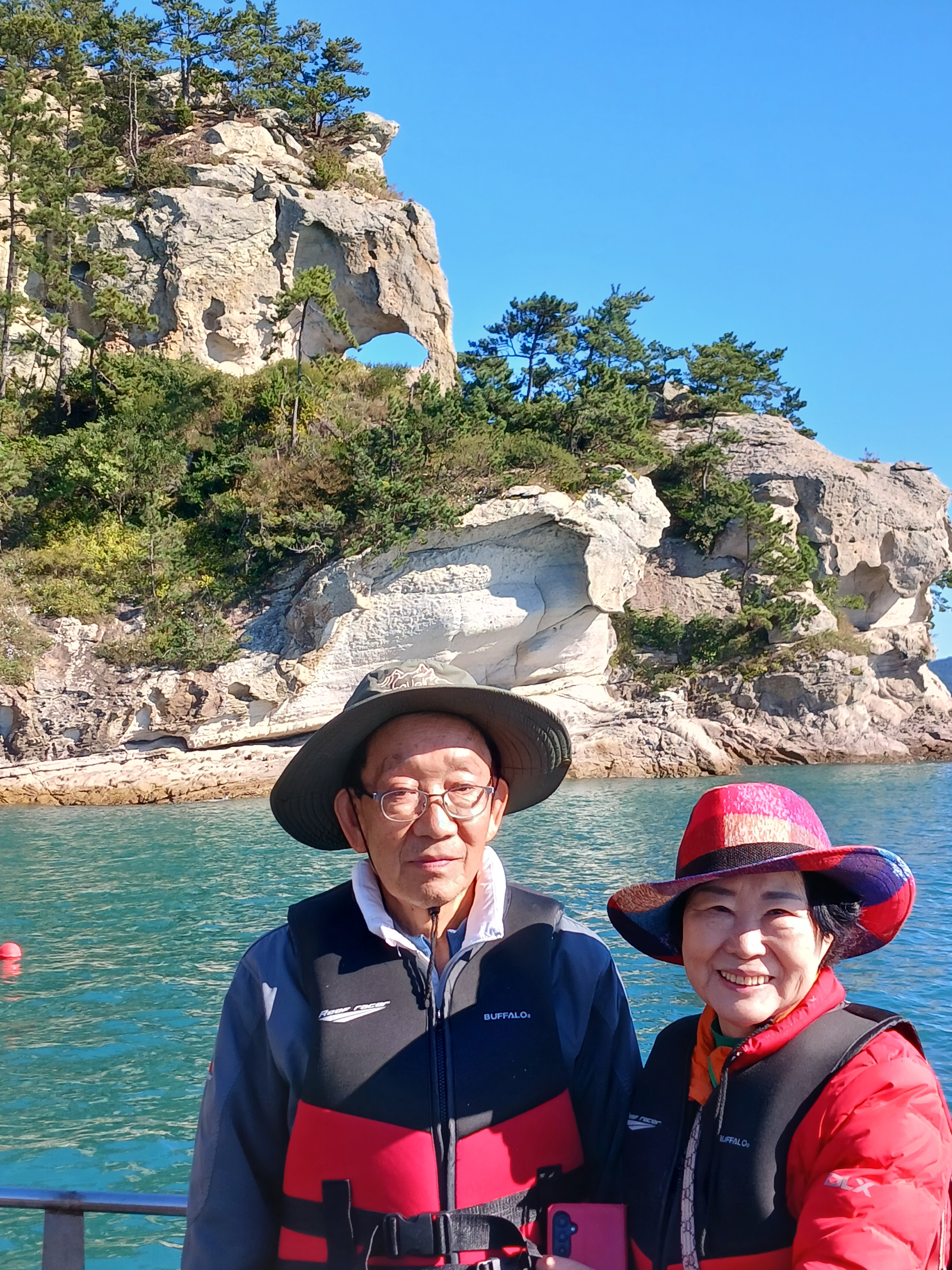 ▲ 조금만 더 윗쪽으로 돌아가면 부채바위와 병풍바위가 보인다는데 이쪽은 풍랑이 세어서 위험하여 그만 돌아 내려갑니다.