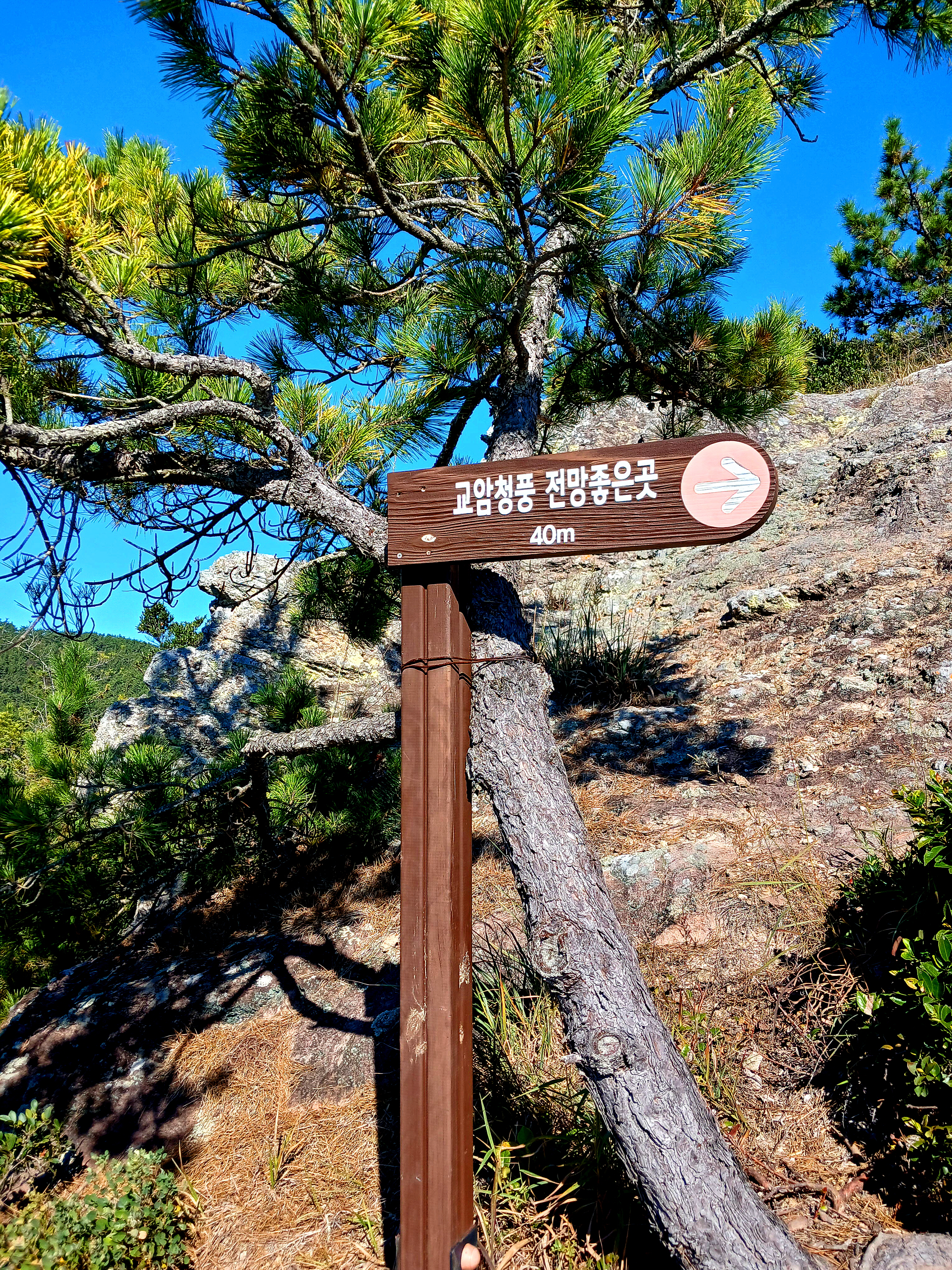 ▲직진하면 전망대가 있고 우측으로 내려가면 전망 좋은 곳(교암청풍 일부를 볼 수 있음)을 지나 교암청풍으로 갑니다.