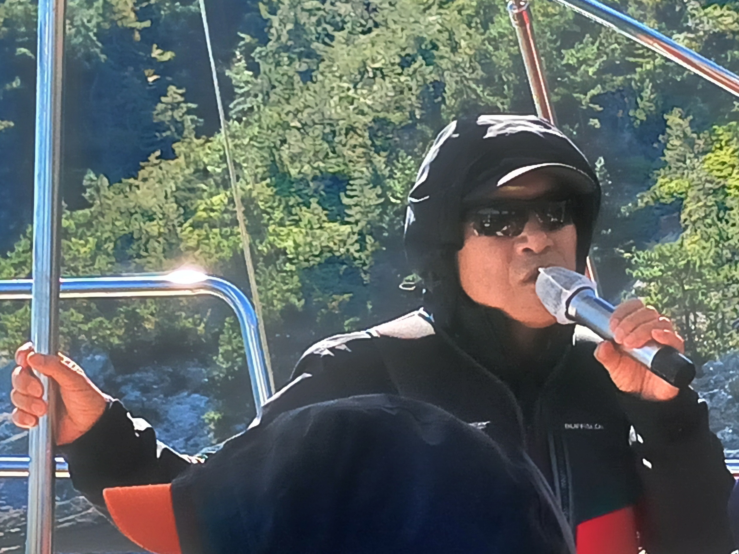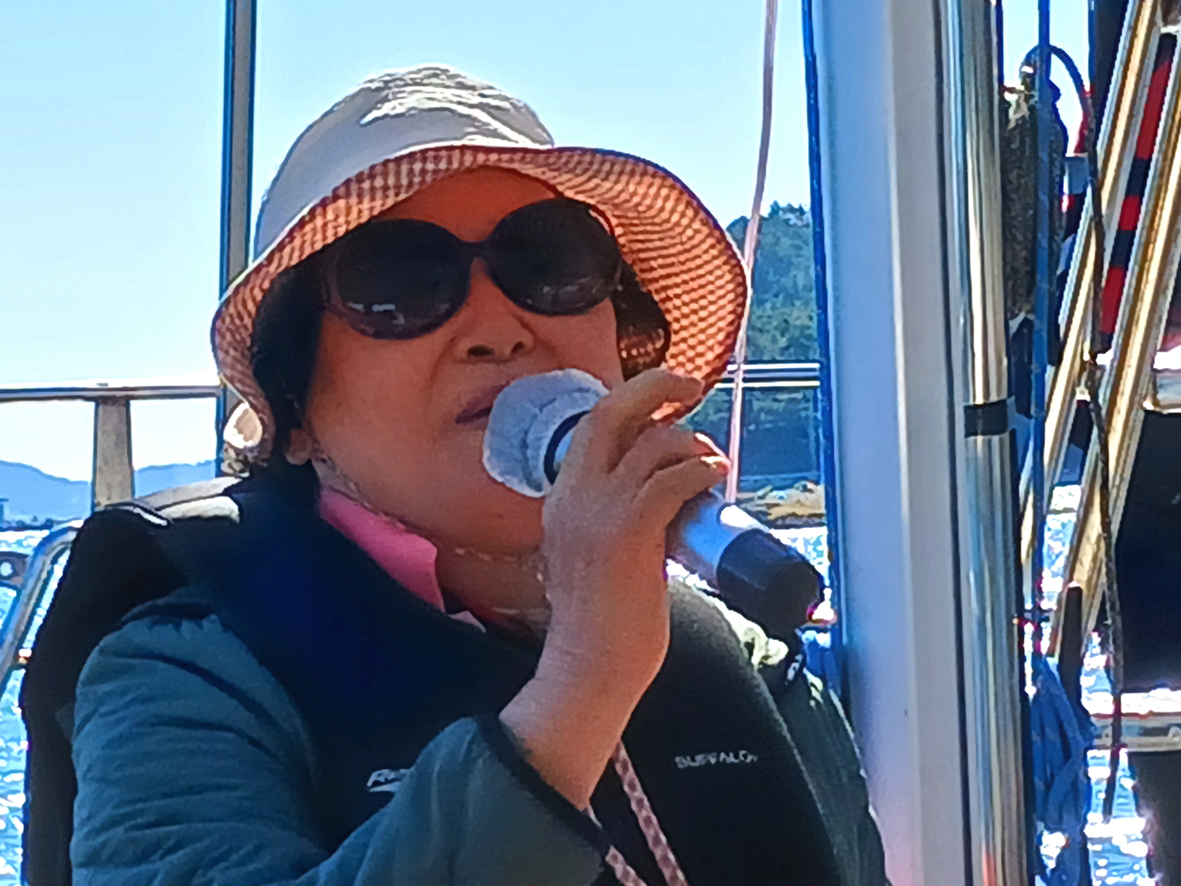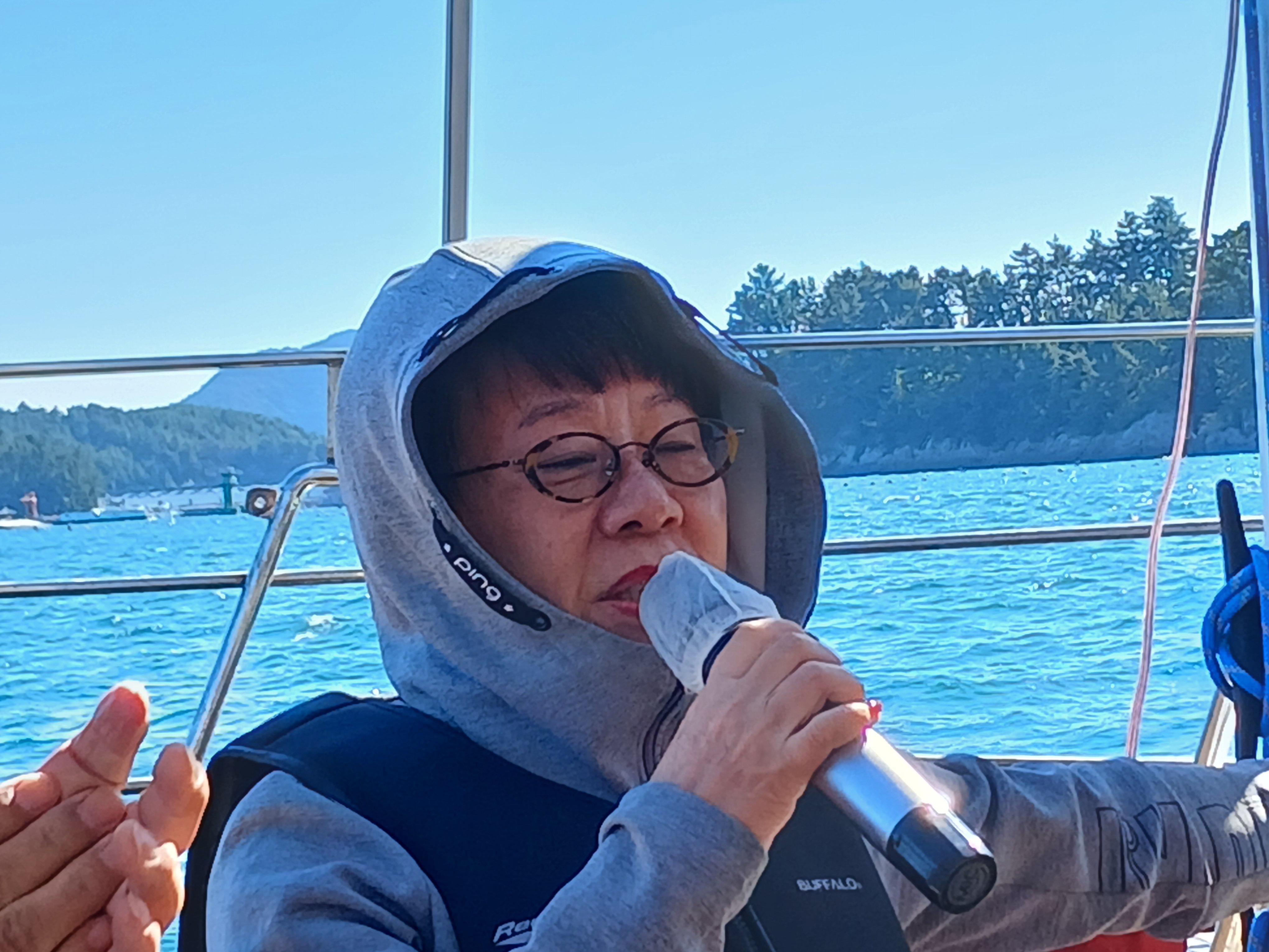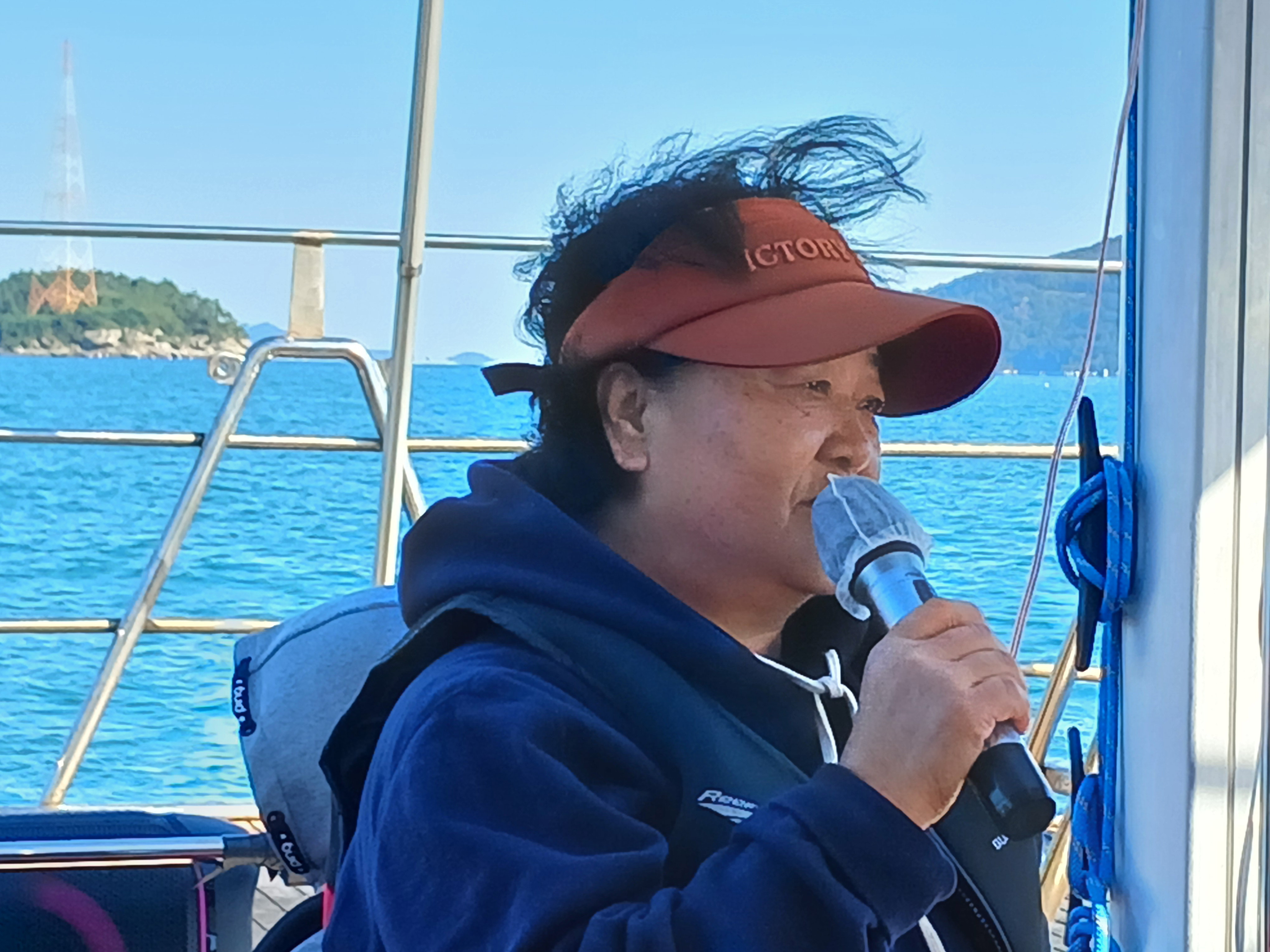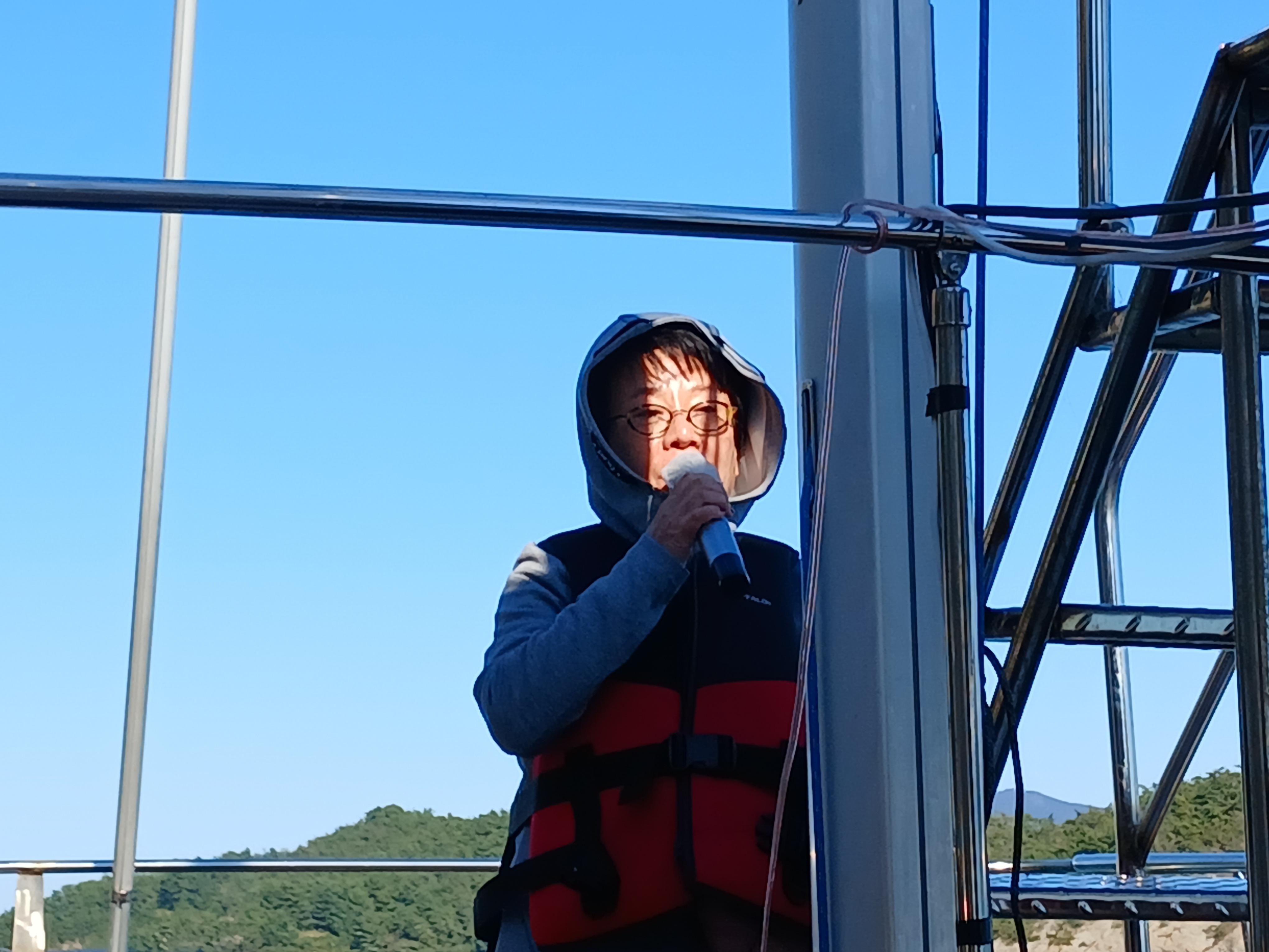 ▲ 1등 가수의 노래를 다시 들으며 요트관광이 끝났습니다. 1박2일의 섬 산행의 일정도 다끝나고 거금도 우두항으로 가서 버스에 올라 청주로 향합니다,