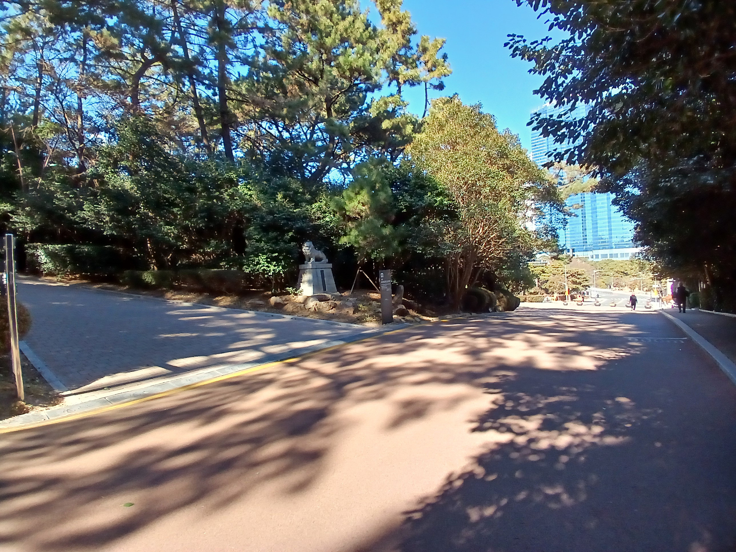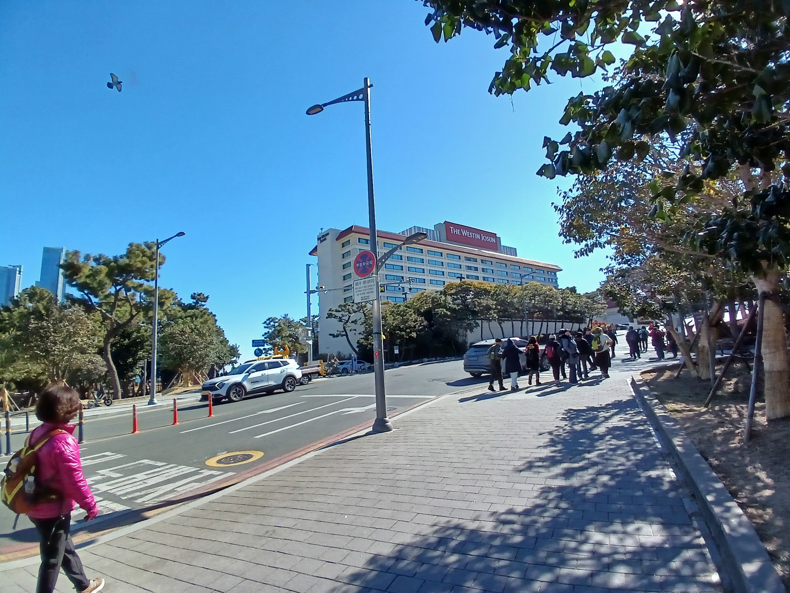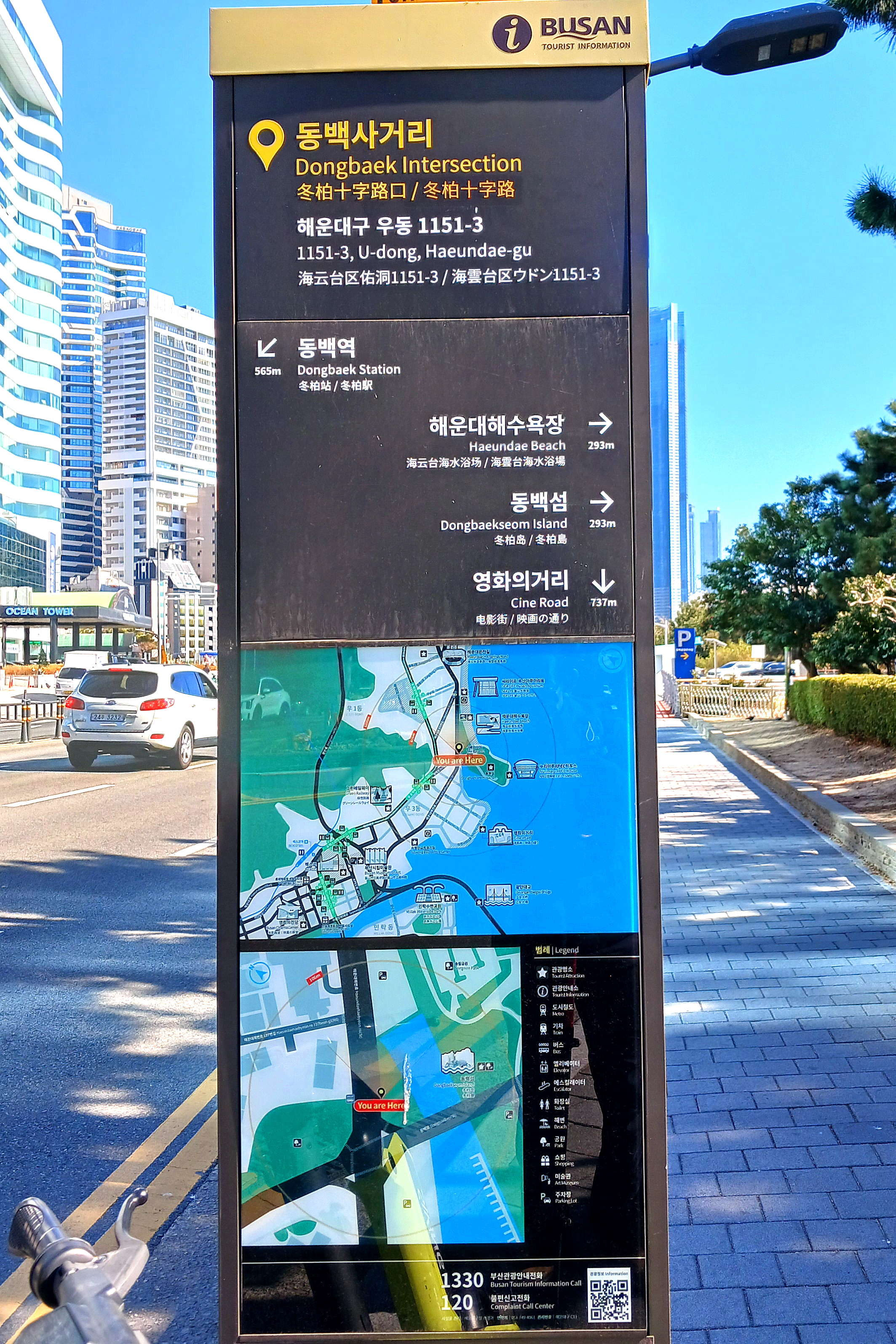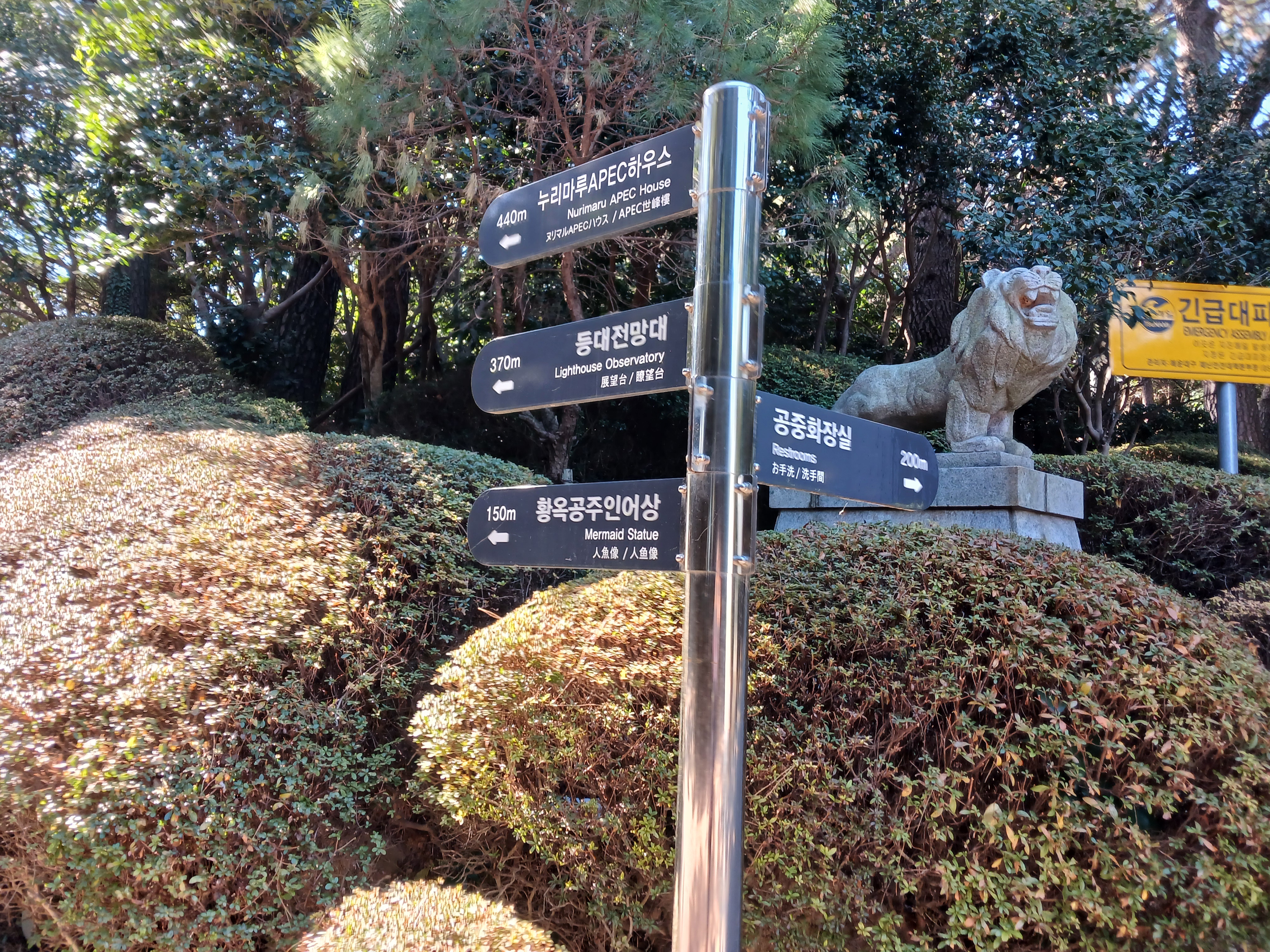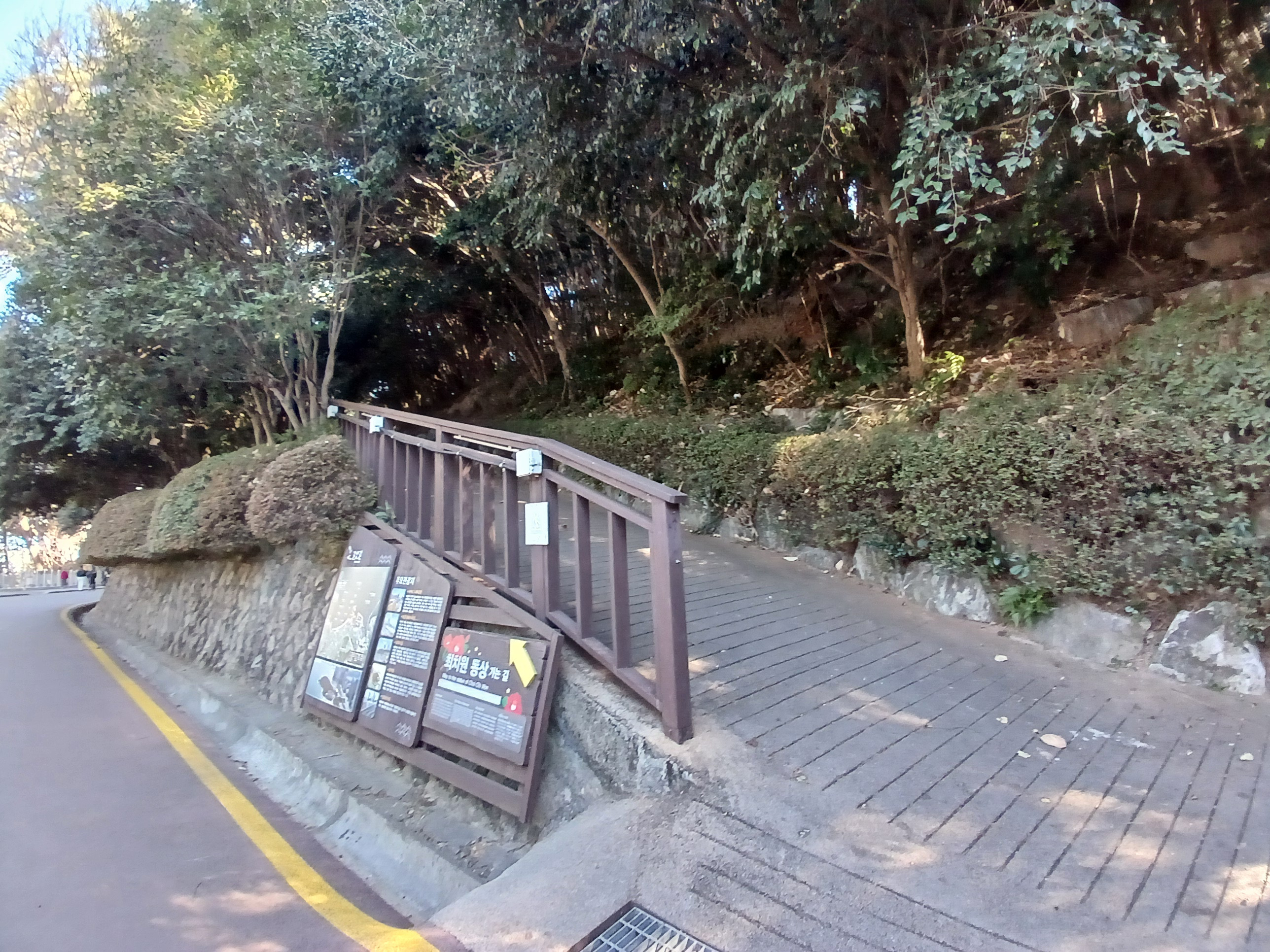 ▲ 우측으로 직진하면 동백섬으로 가고 길을 건너 좌측으로 직진하면 갈맷길입니다.