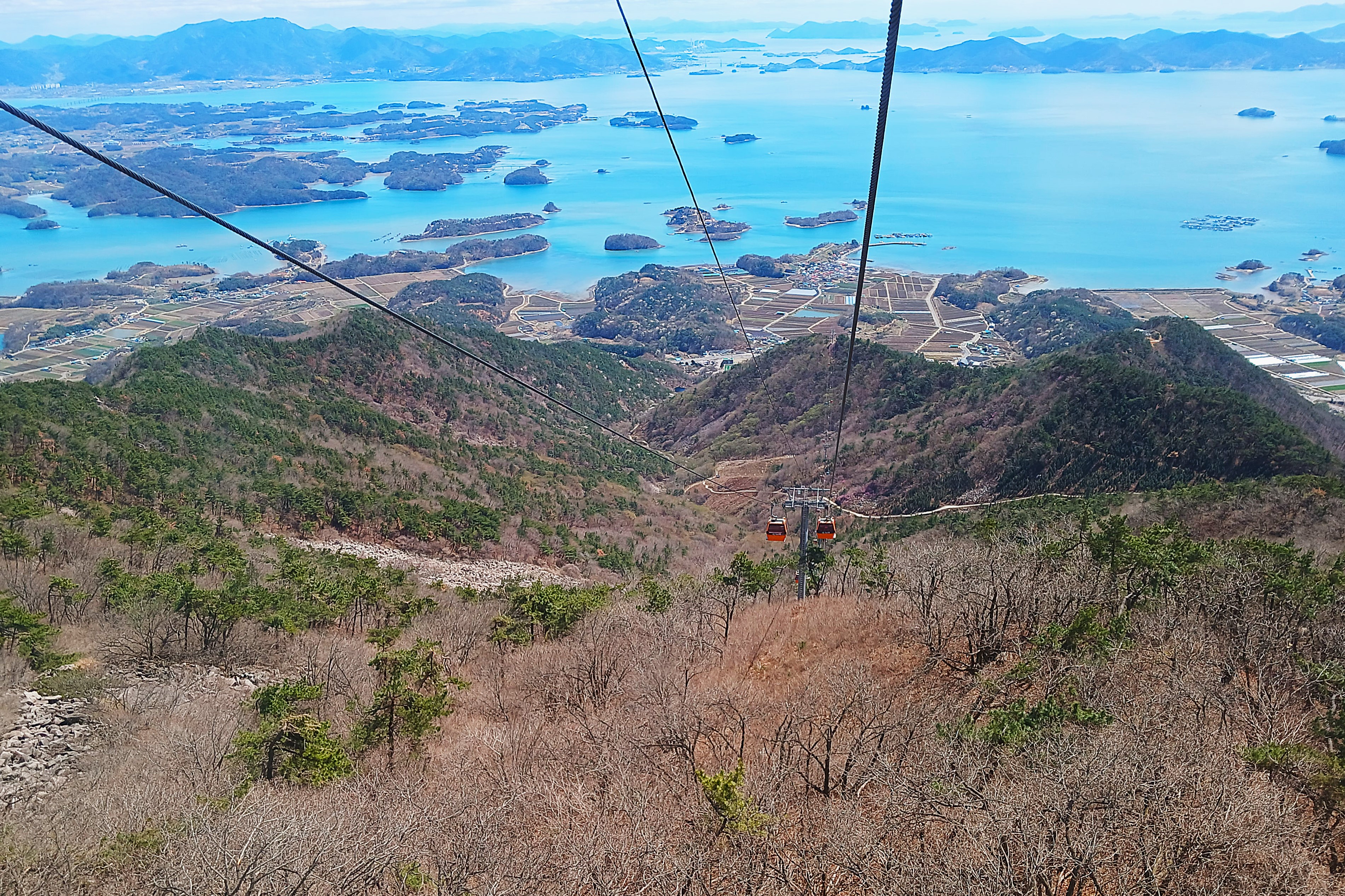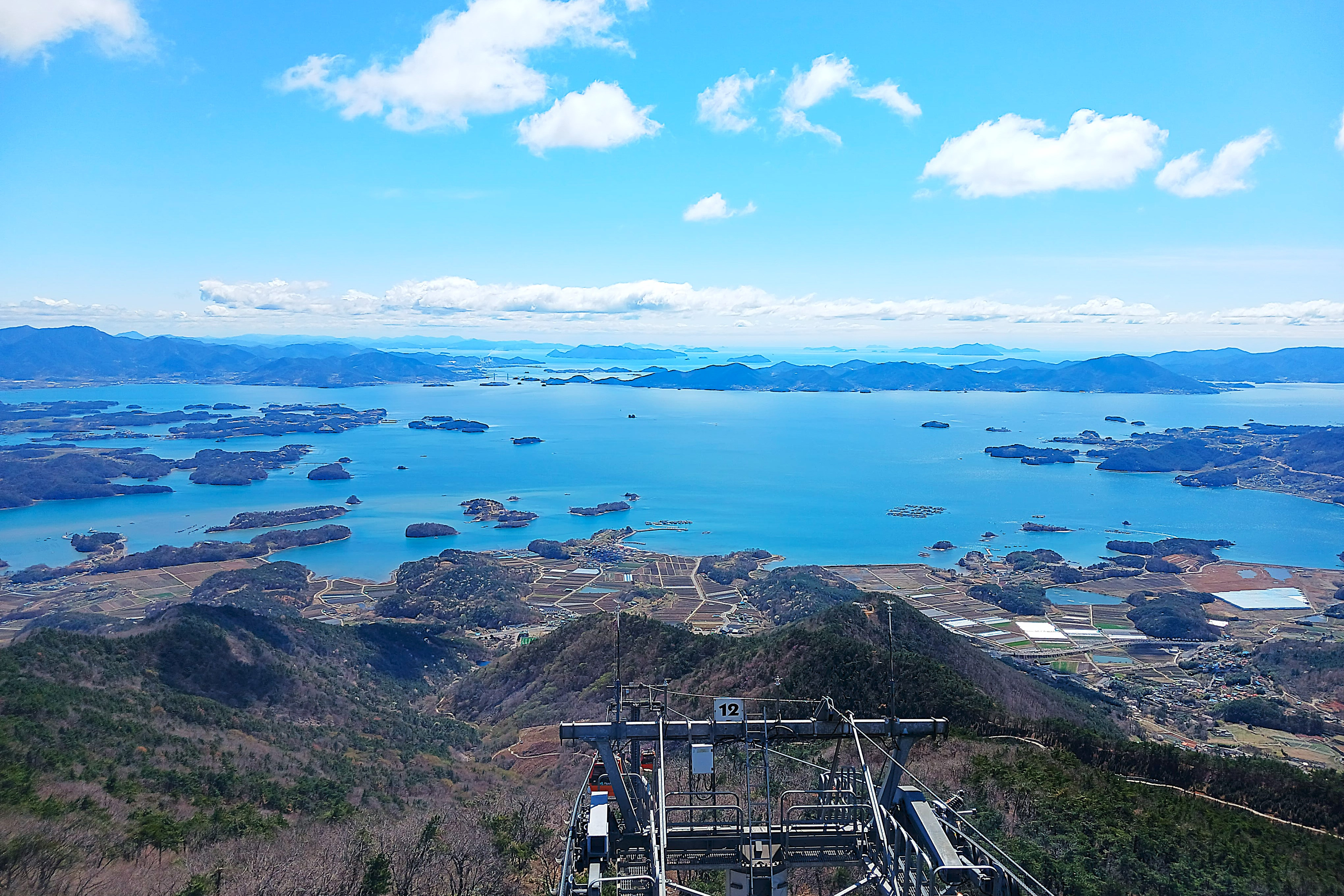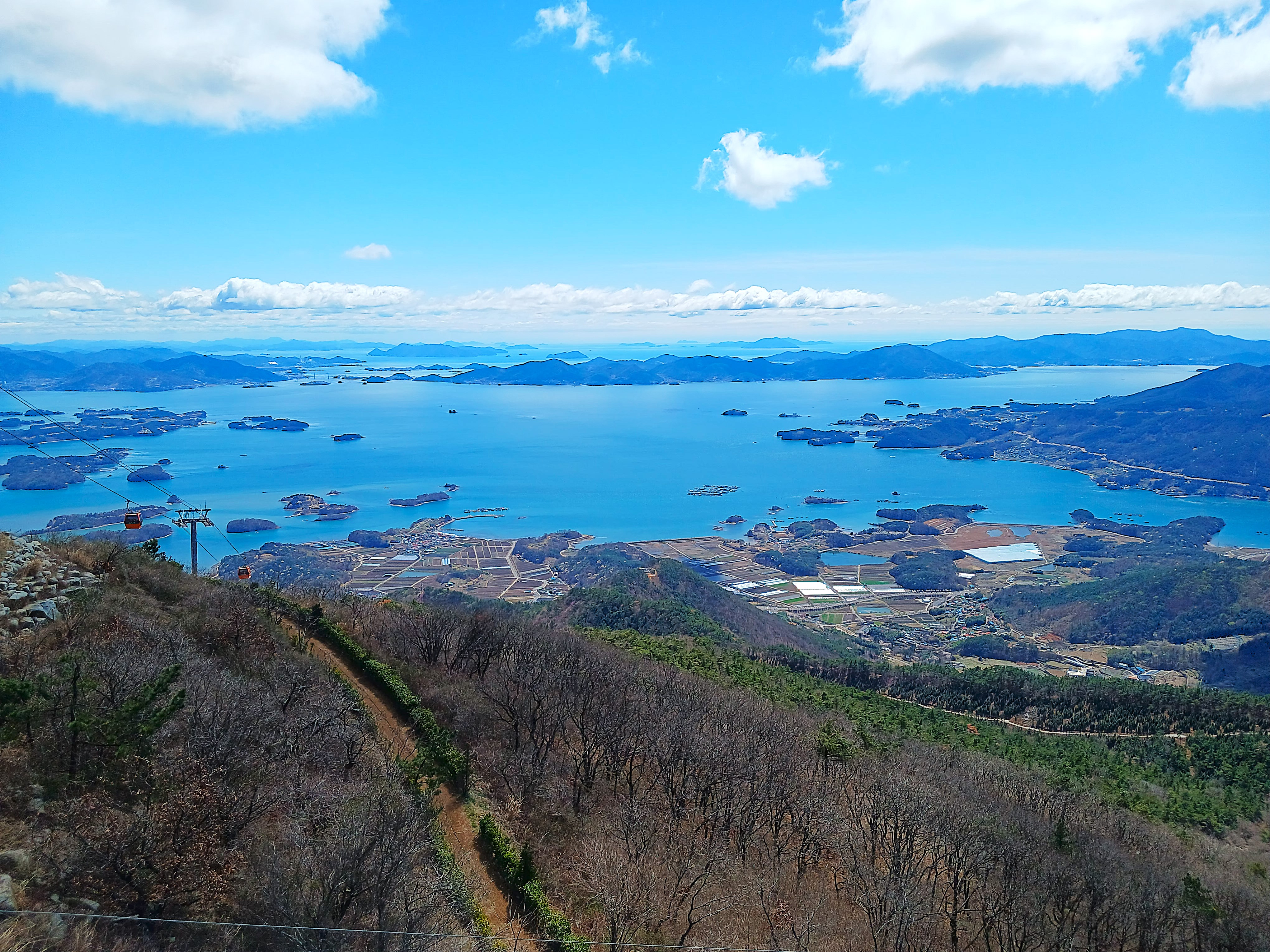 ▲ 정상에서 보는 다도해 전경. 아침에 비가 오더니 다행히 개어서 더욱 청명하네요.