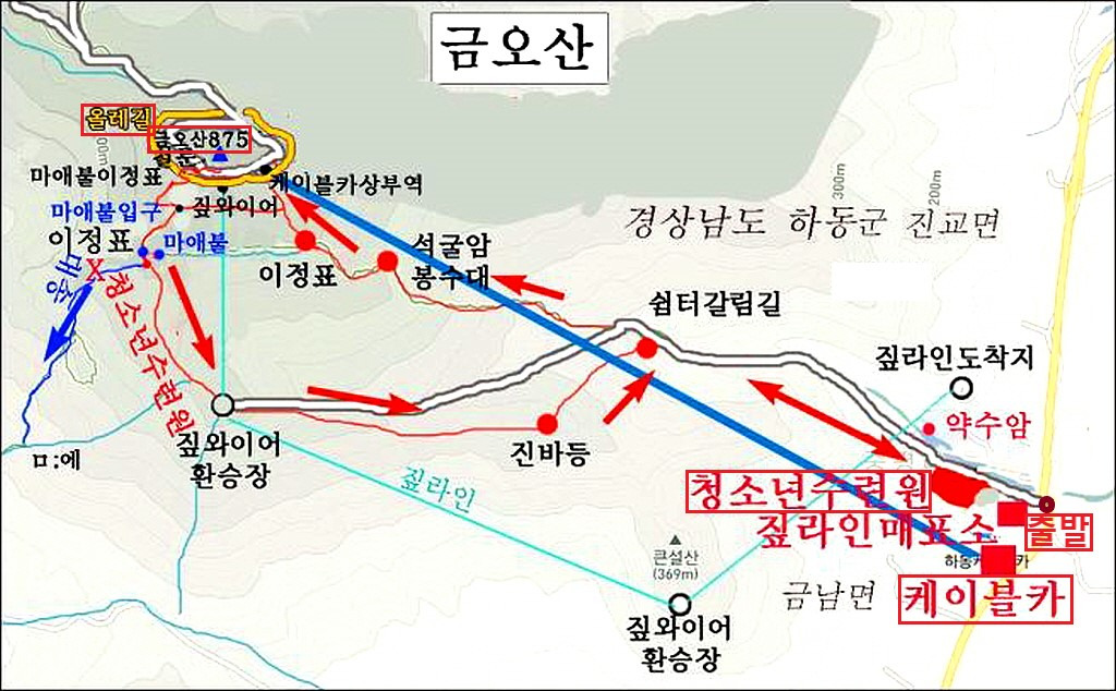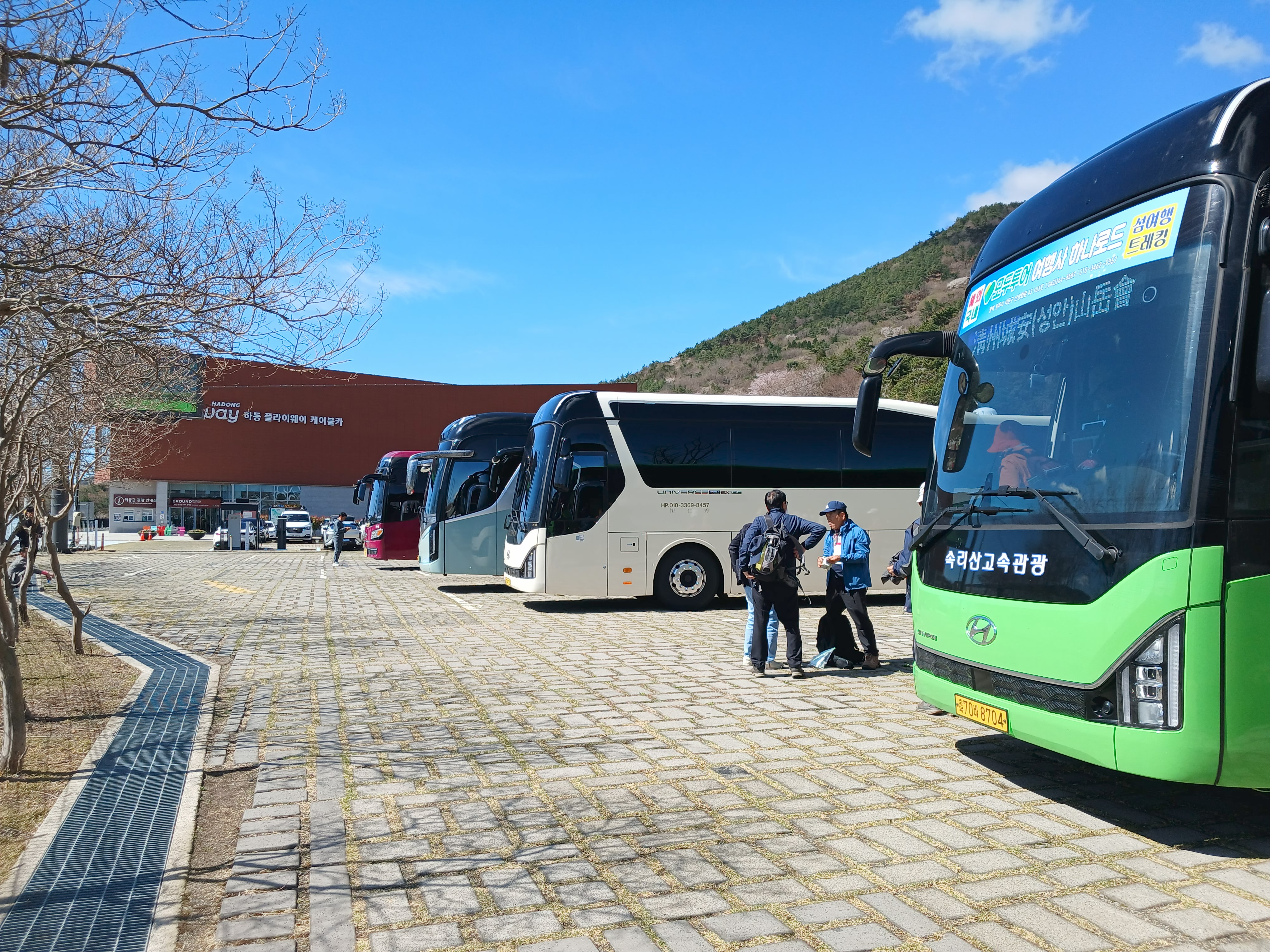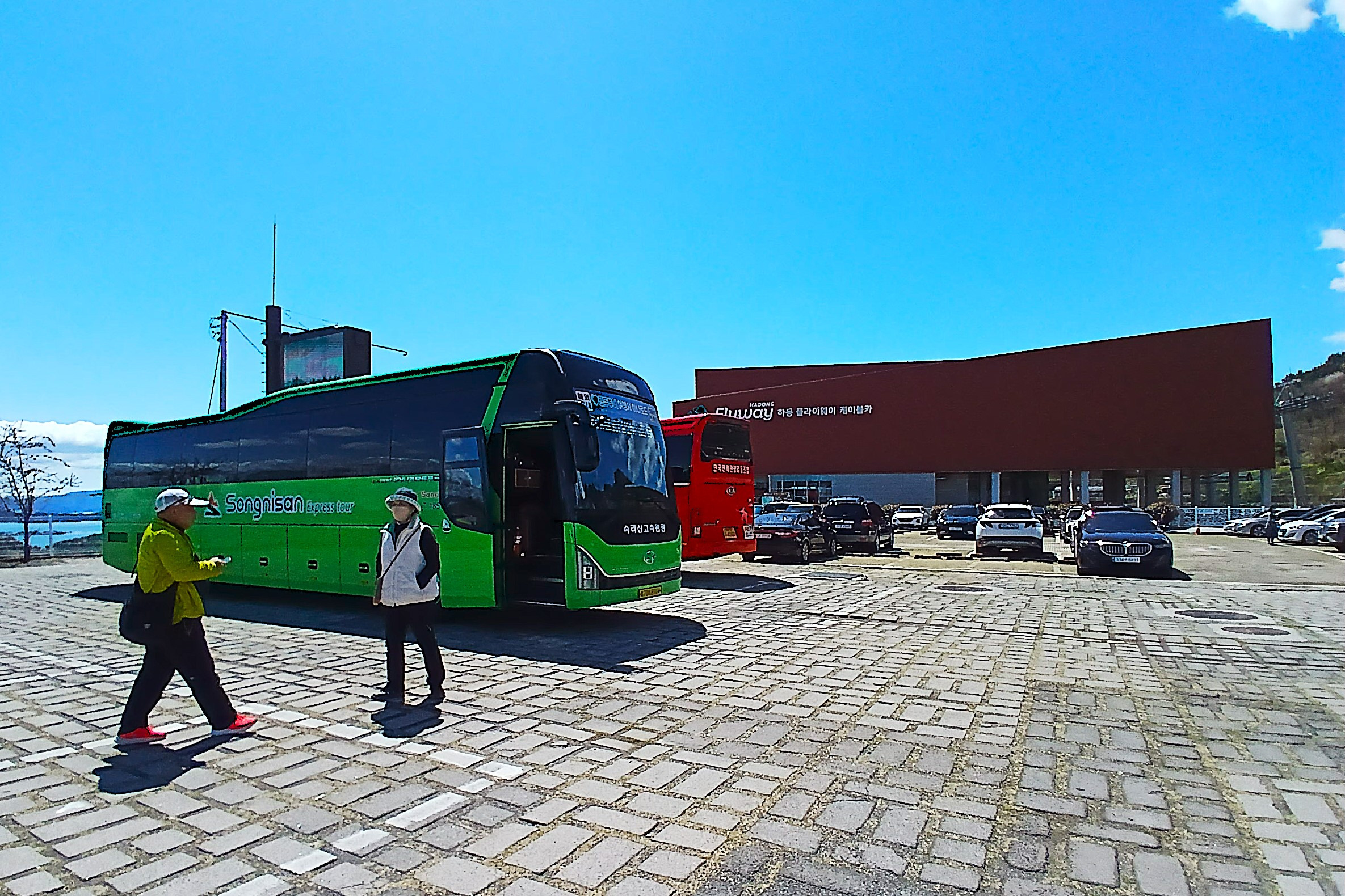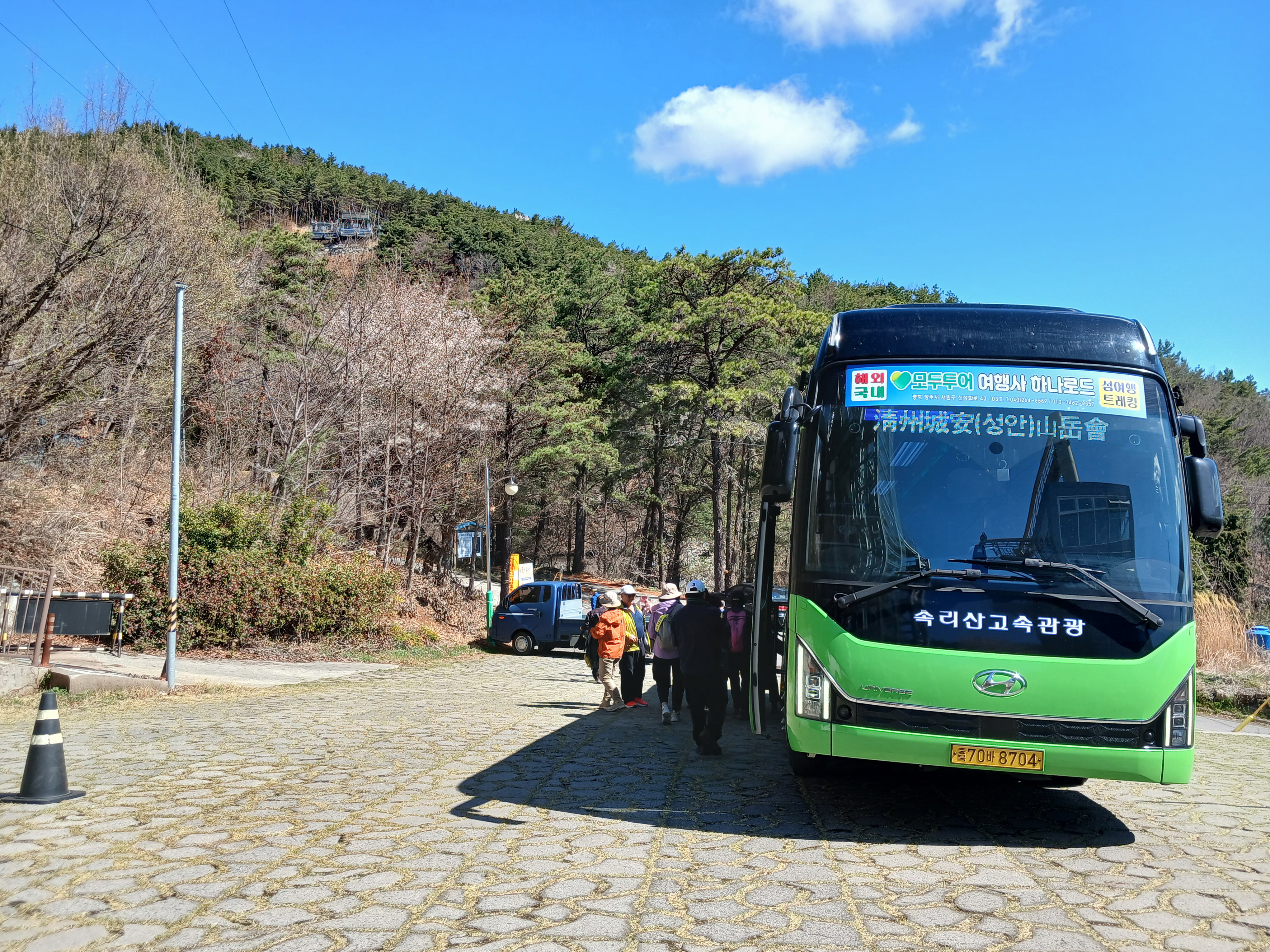 ▲먼저 등산팀을 등산로 입구에 내려주고, 나머지 분들은 케이블카 주차장에서 내려 케이블카를 타고 정상을 다녀옵니다.